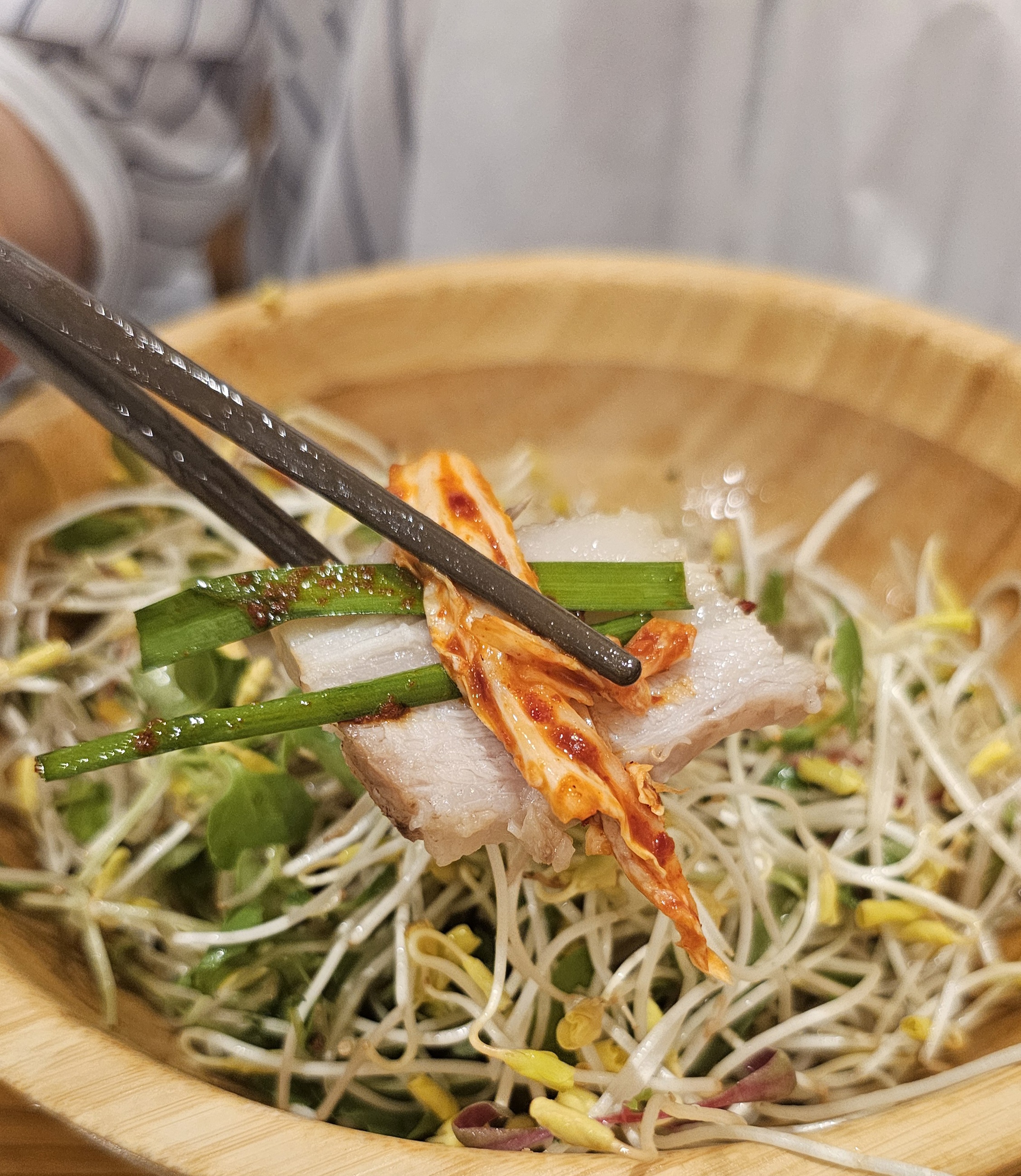 신선한 채소 (메밀싹인가요?)가 푸짐하게 올라가 있어 샐러드처럼 상큼