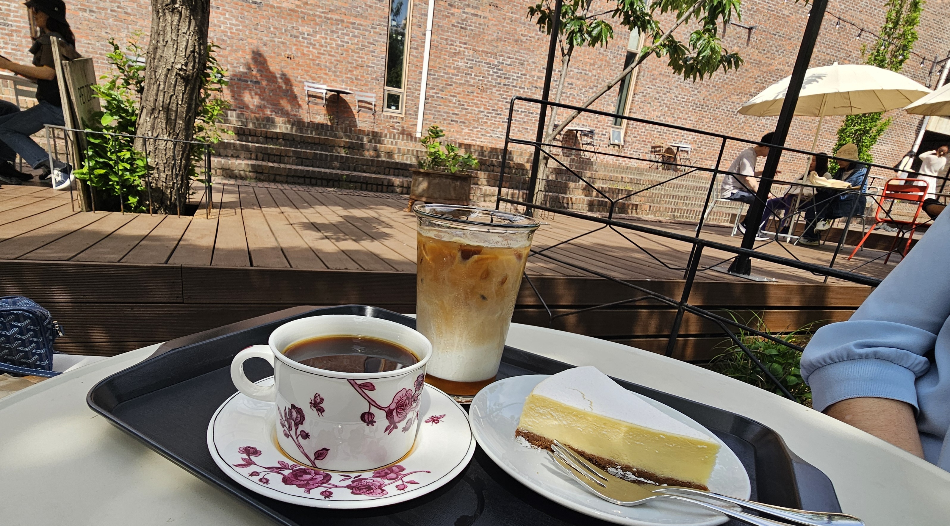 실내는 북적였지만, 야외 테라스는 한적해서 오히려 더 좋았어요. 부드러운 봄 햇살 아래, 바람은 살랑살랑~ 분위기는 말 그대로 ‘커피 영화’ 속 한 장면 같네요.