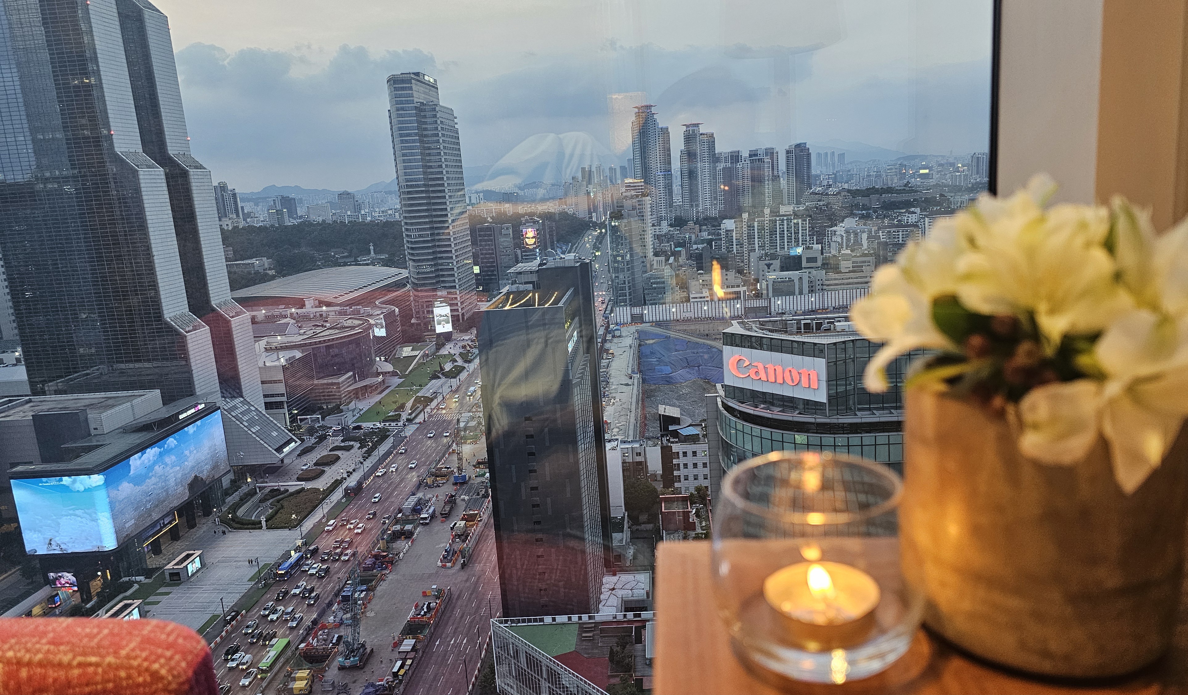 통유리 너머로 보이는 삼성동 뷰에 저절로 감탄이 나왔어요.