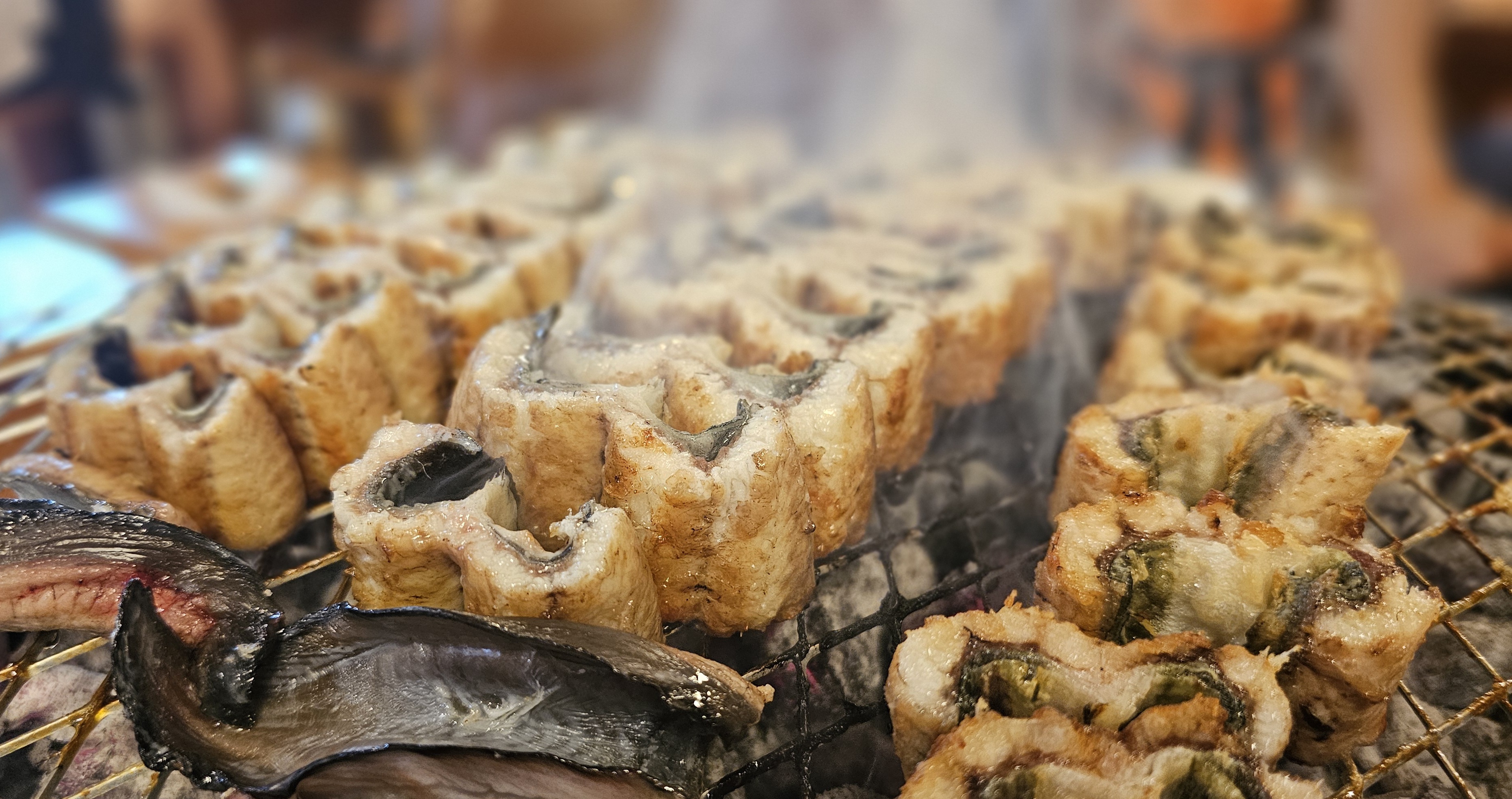 숯불에서 지글지글 구워지는 장어, 비주얼부터 압도!