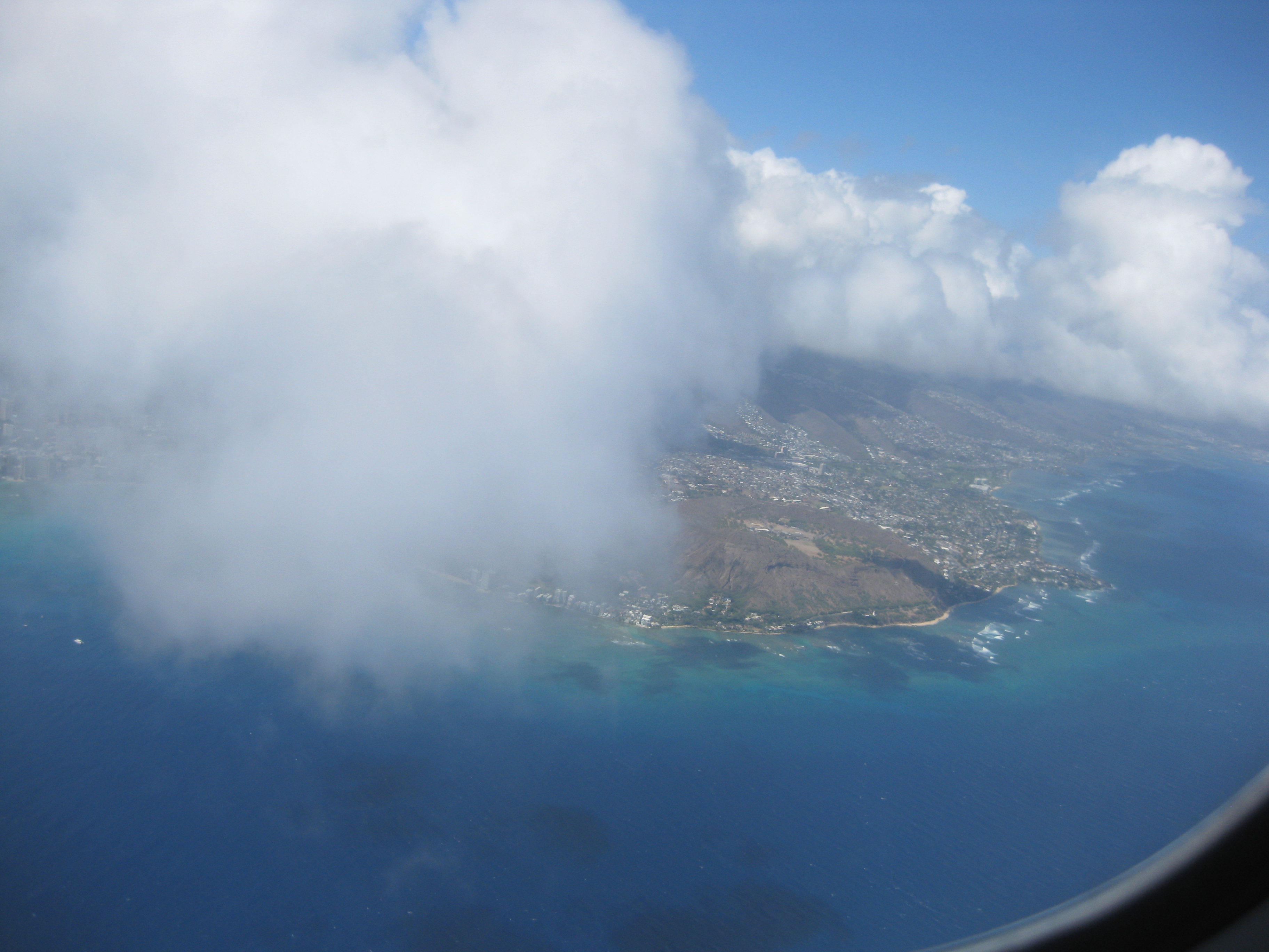 8시간 반 만에 하늘에서 오아후을 내려다 봤어요. 와이키키 해변에 빌딩 숲이 또렷이 보였어요. 완전 신기~