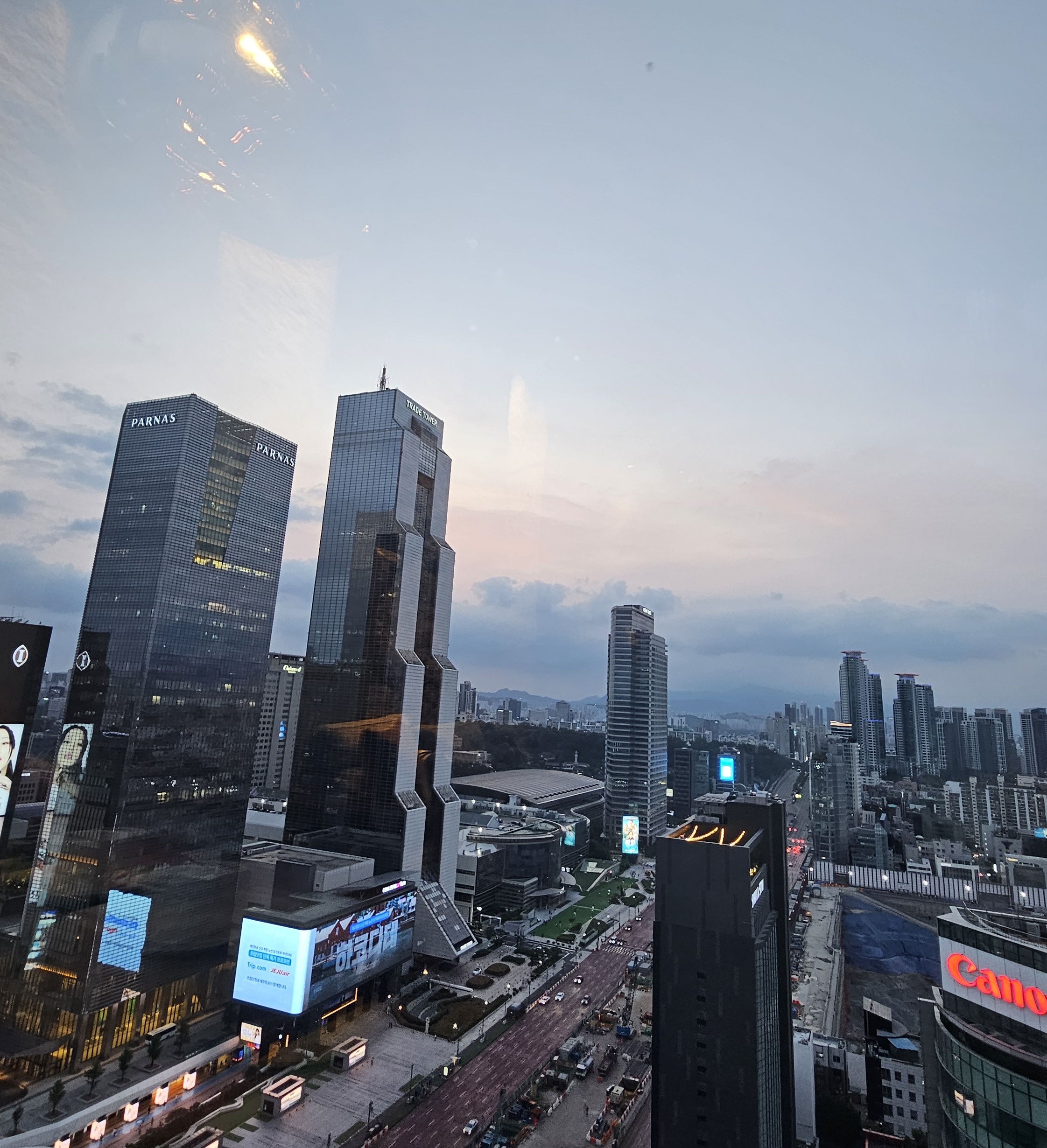 빌딩숲과 어우러진 봉은사 야경이 고즈넉해요