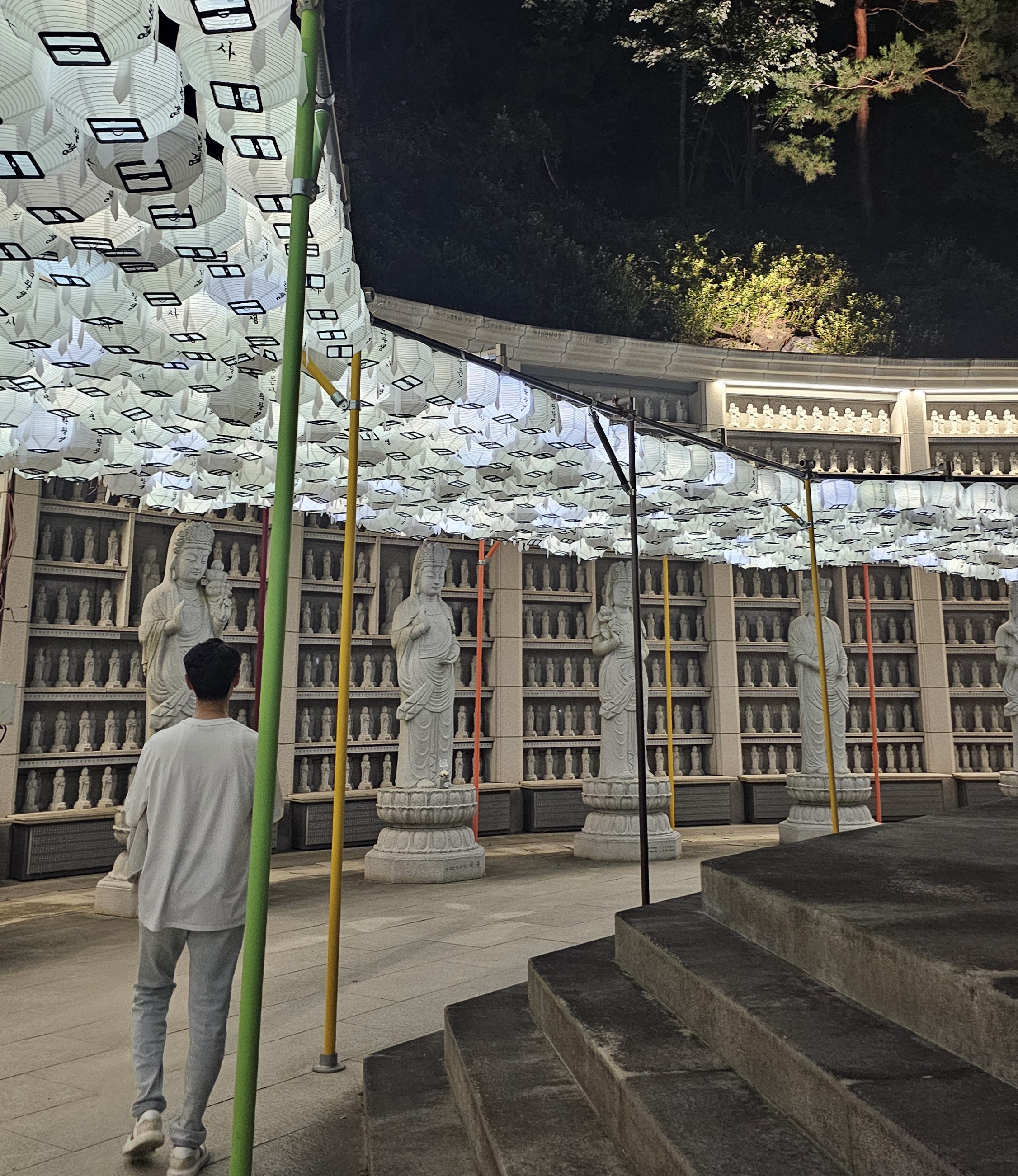 연등 불빛만 은은히 켜진 절 안을 걷고 있으면