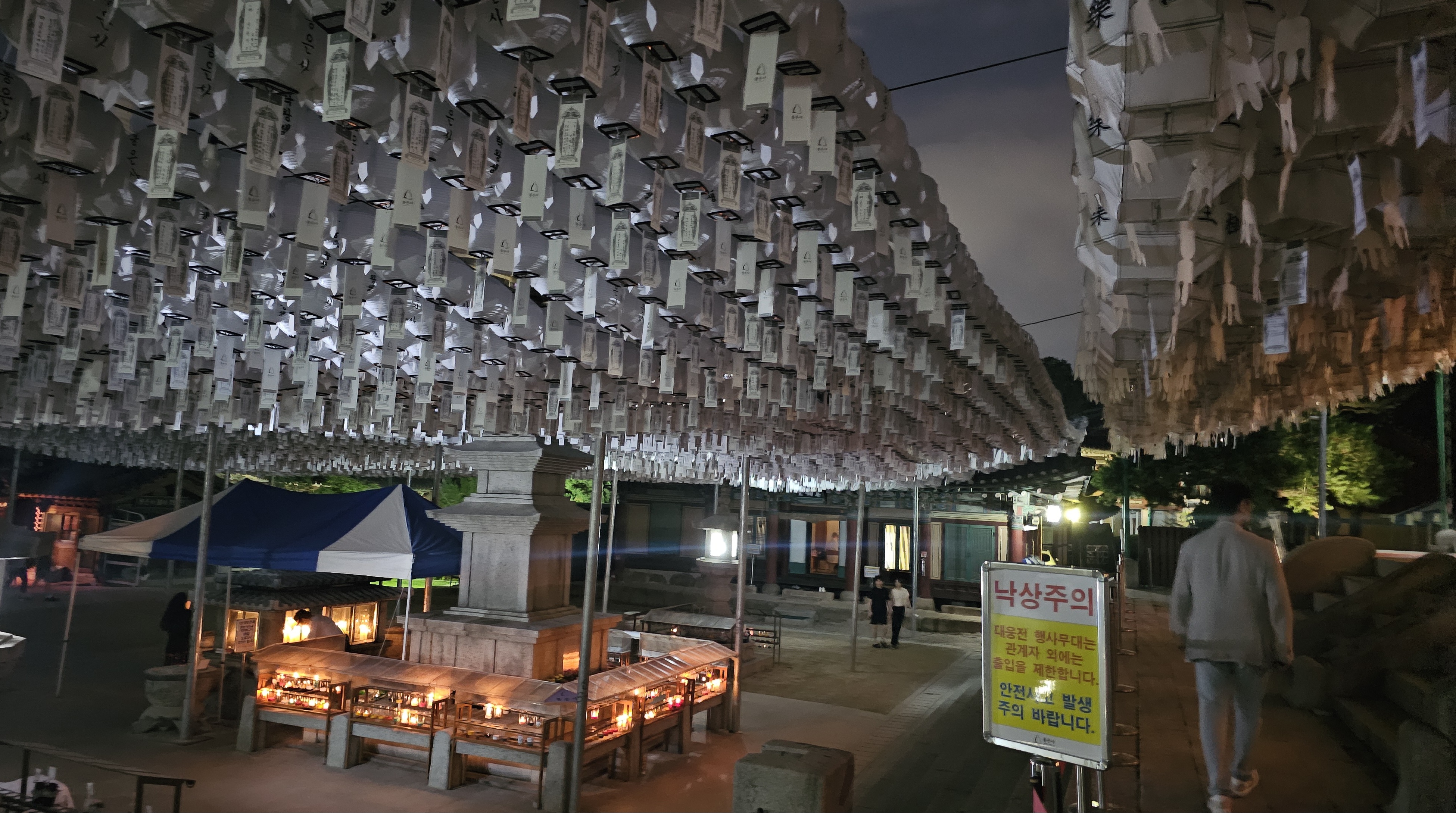 연등 불빛만 은은히 켜진 절 안을 걷고 있으면