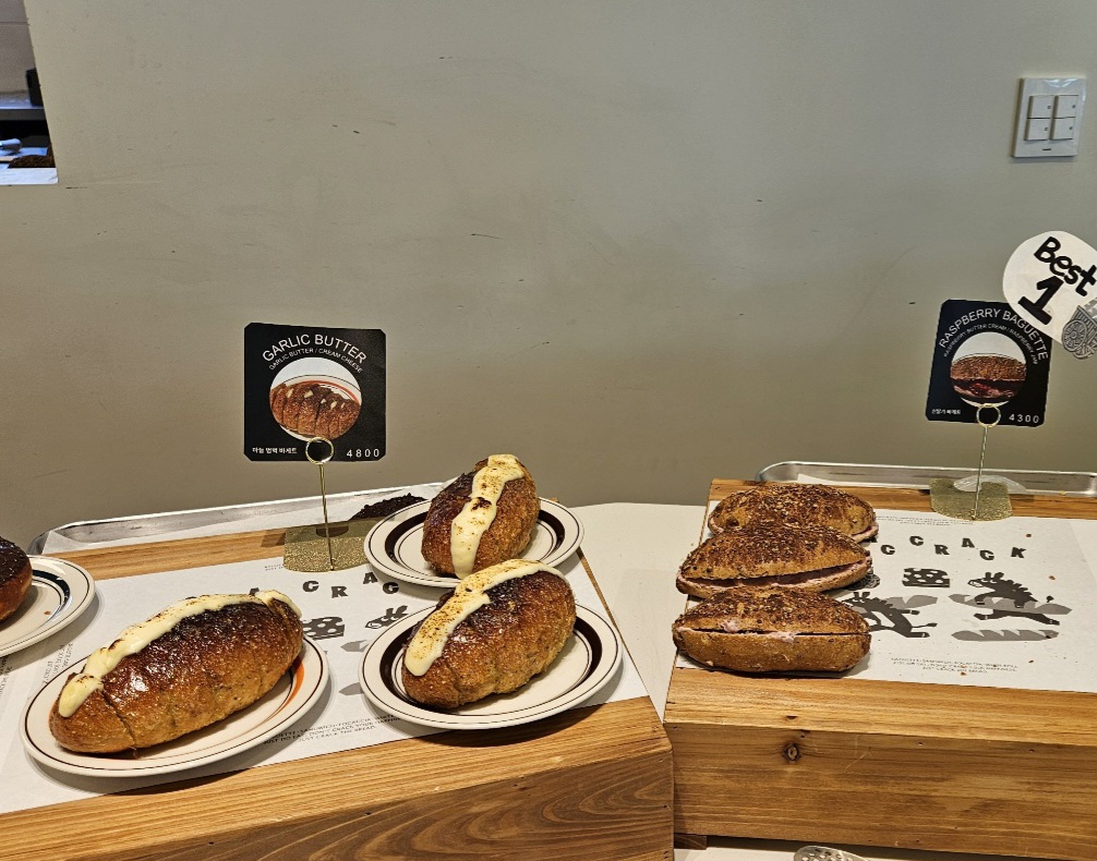 지금은 바게트에 초점을 맞춘 카페로, 다양한 크림 바게트와 소금빵 등이 추가되었네요.