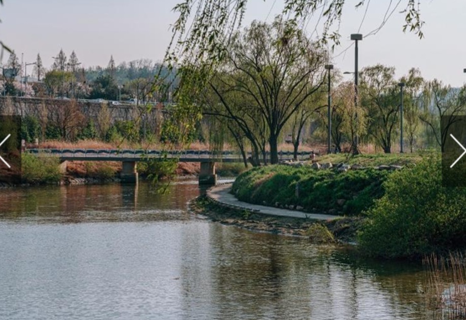 전체 면적은 약 7,500평(1.2km 산책로)으로 혼잡한 공원을 벗어나 조용히 걷기 좋은 코스예요. 특히 버드나무 아래 마련된 잔디 쉼터는 가족 단위 방문객에게도 인기가 많습니다.