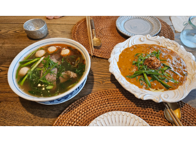 베트남 중부식 매콤 쌀국수인 분보후에는 일반적인 쌀국수보다 국물이 더 진하고 붉은 빛을 띠는 게 특징이에요.
