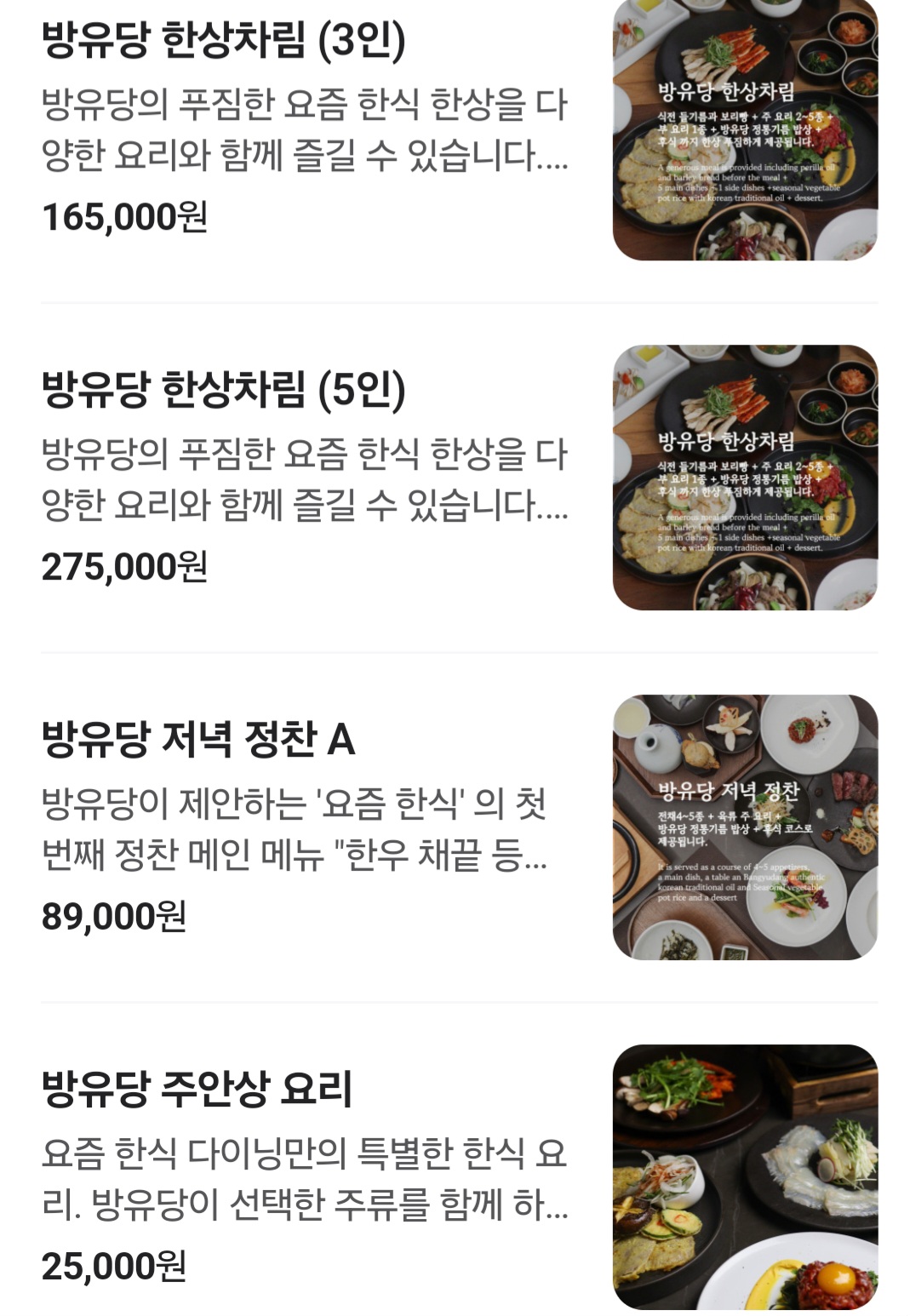 방유당 메뉴 :