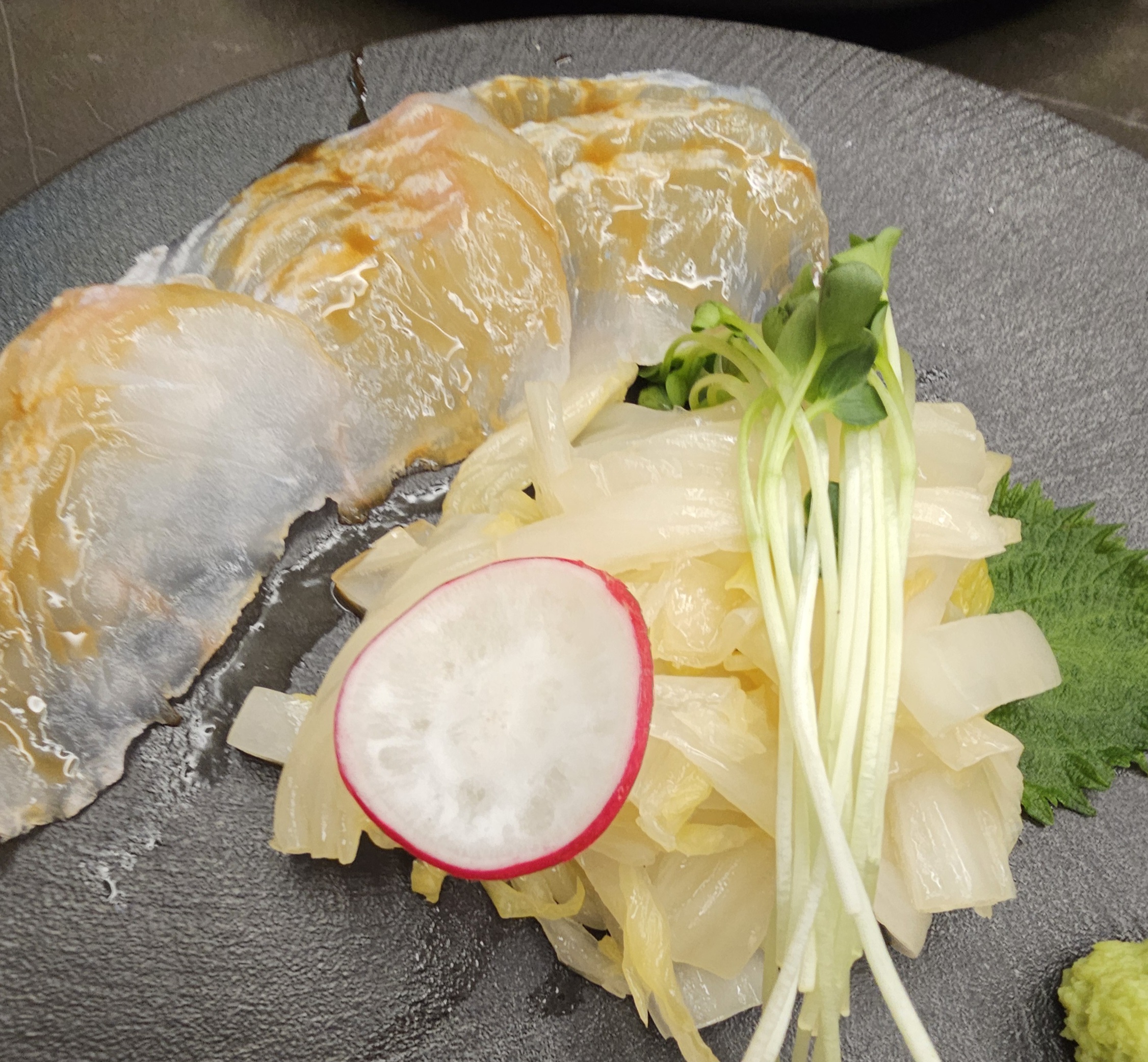 생들기름 광어회와 묵은지