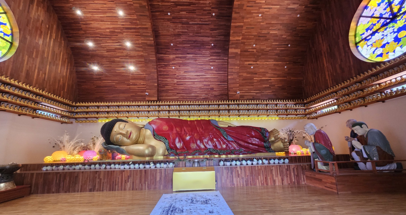 태국이나 미얀마에서 볼 법한 포즈의 부처님이 잔잔한 미소를 머금고 누워계시는데,