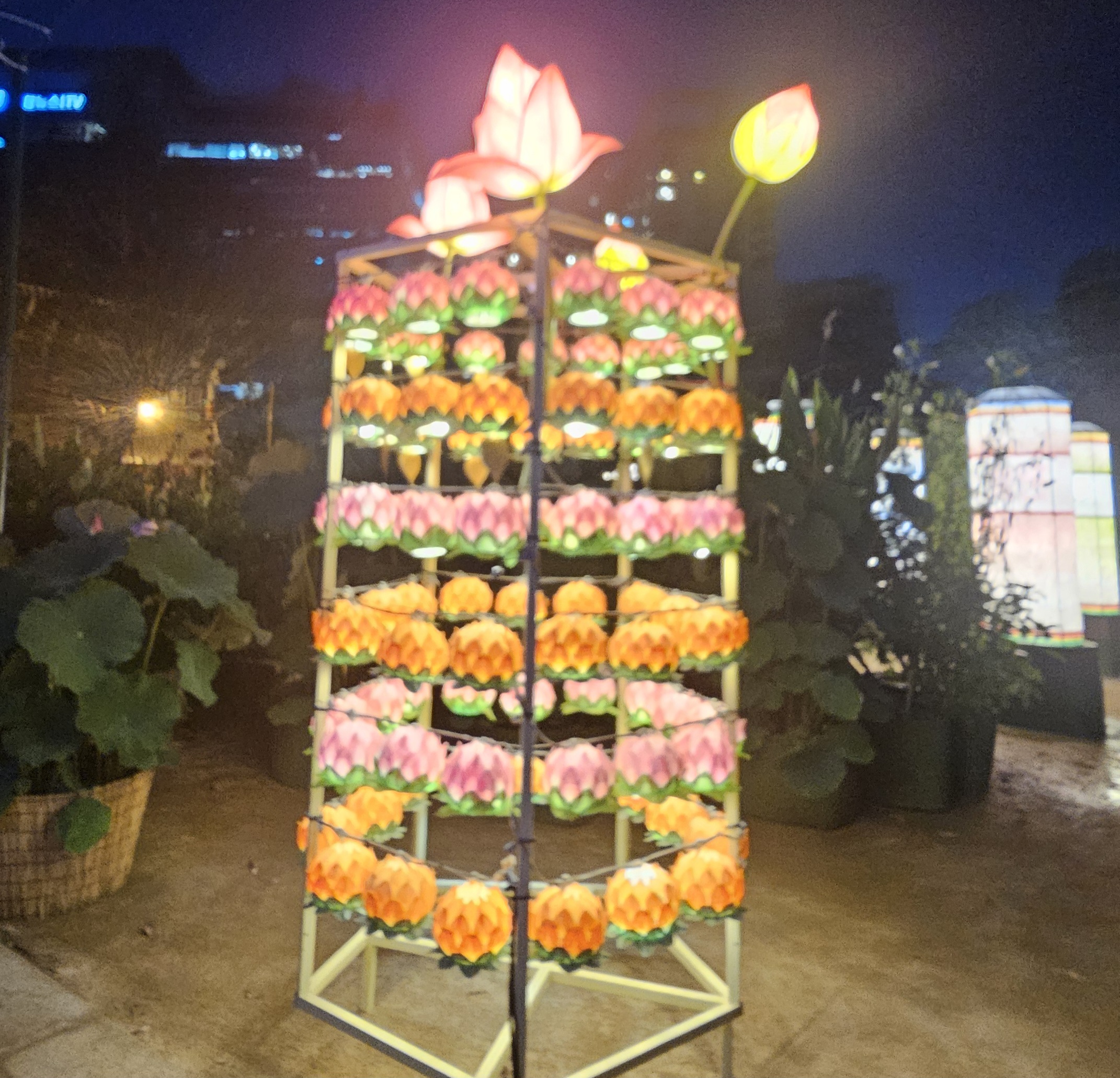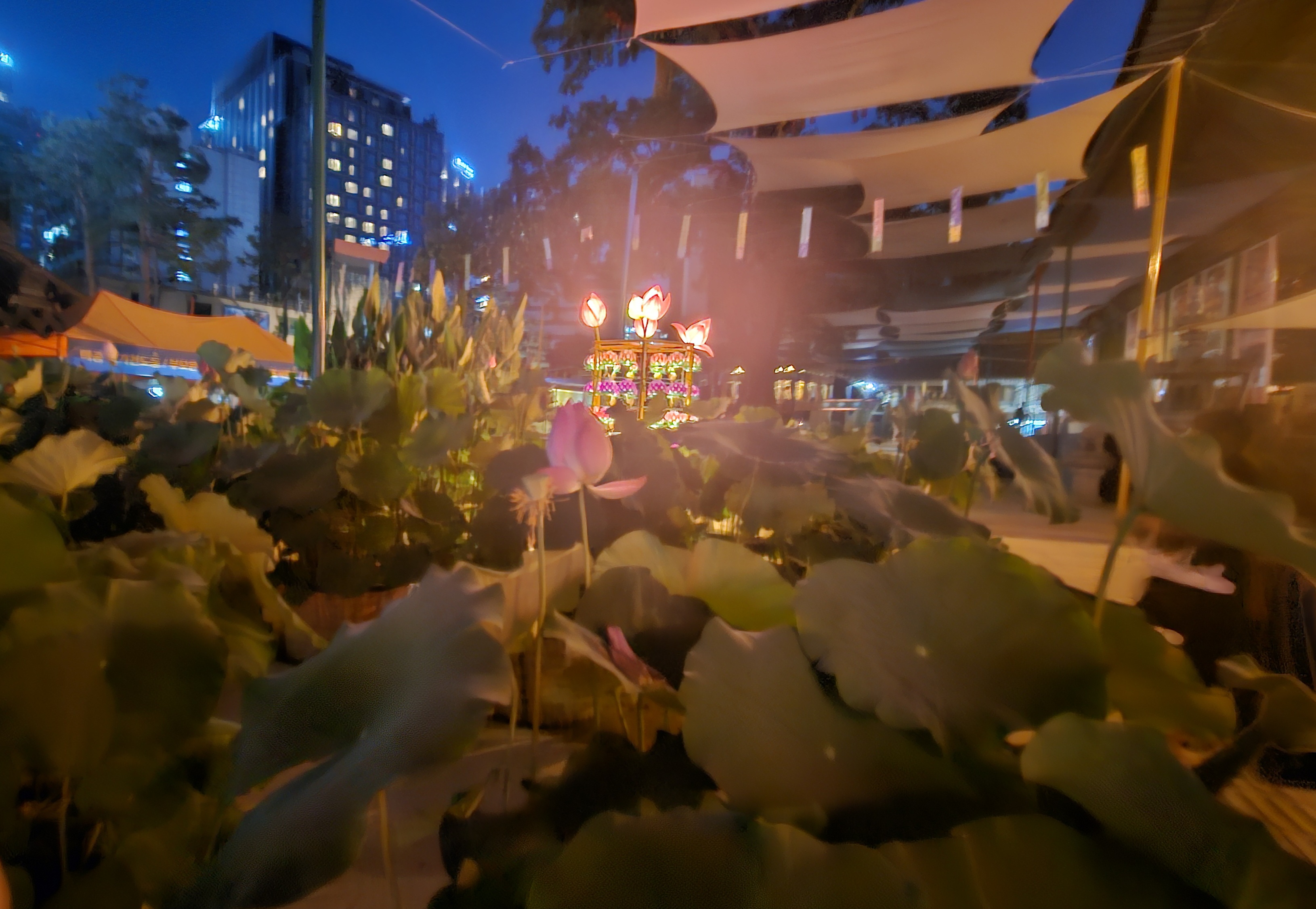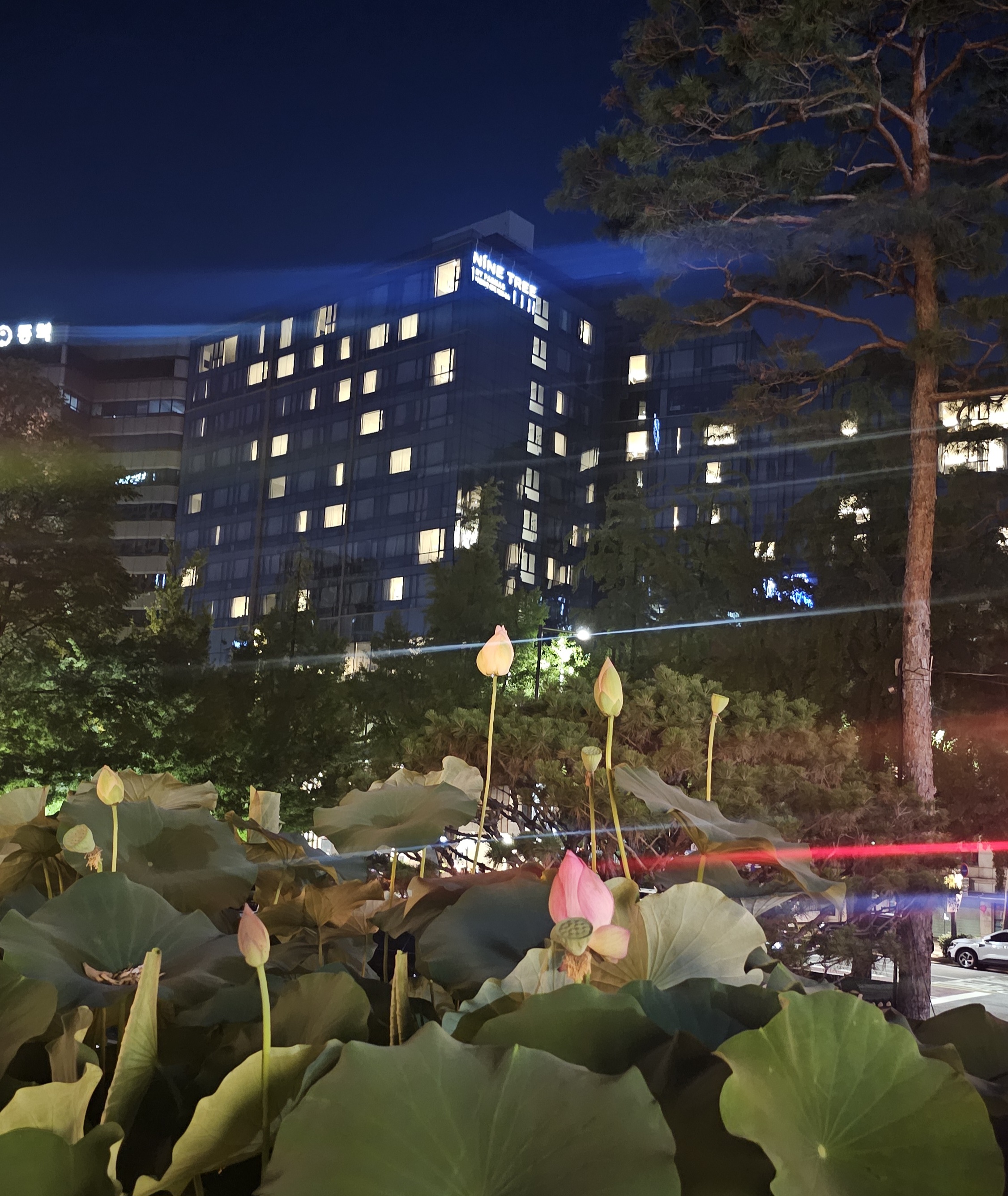 도심 한복판에서 연꽃과 조명, 고요함이 어우러진 특별한 밤 산책,