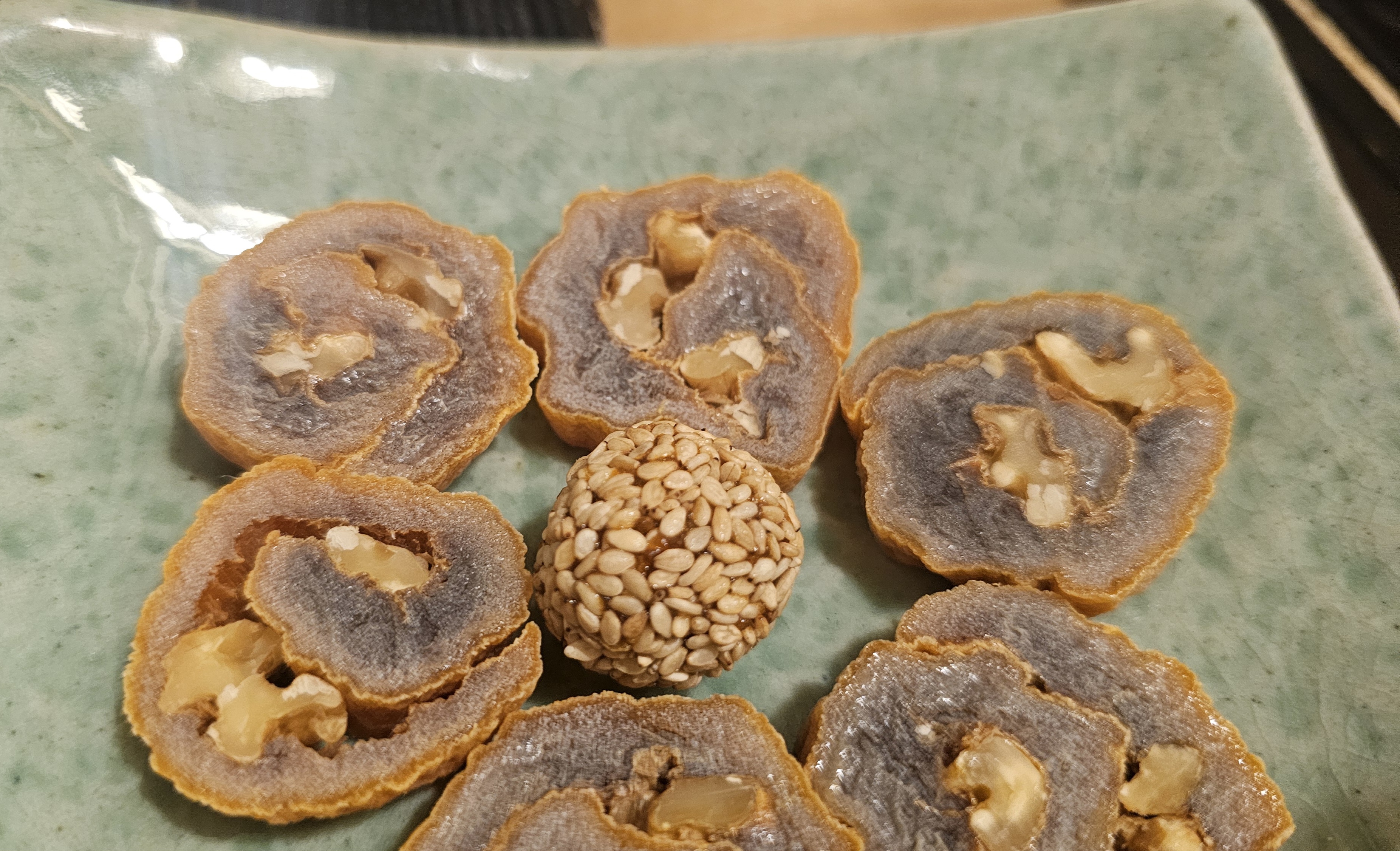 곶감 속에 고소한 호두를 돌돌 말아 깔끔하게 썰어냈는데요,
