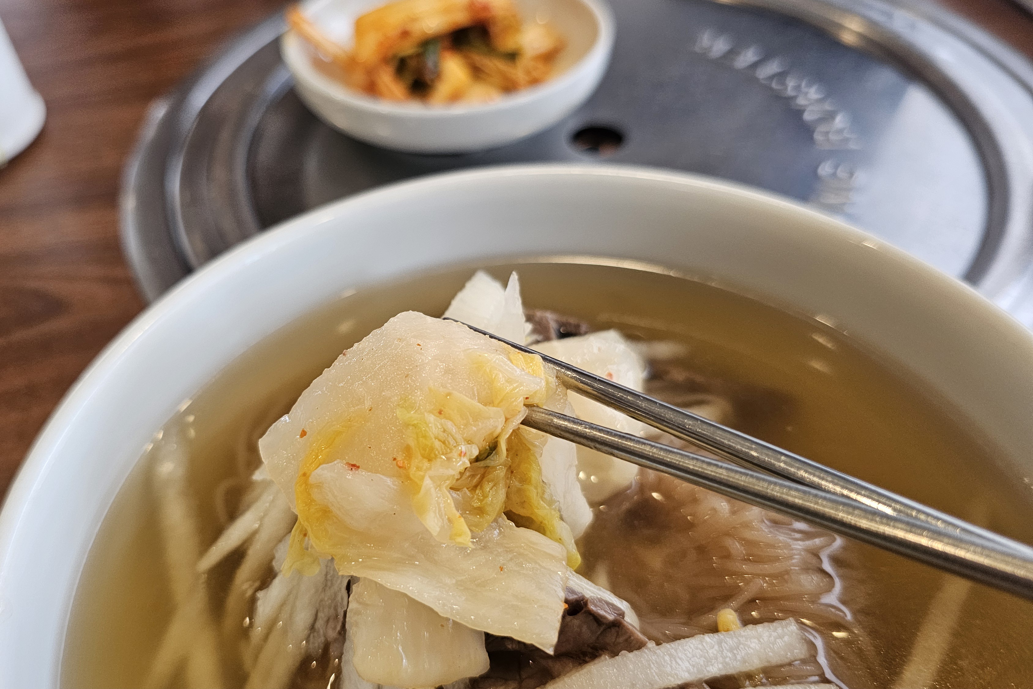 일반적인 겉절이 대비 단맛도 덜하고, 짠맛도 덜한 우래옥의 냉면 육수를 닮았네요 ㅎㅎ