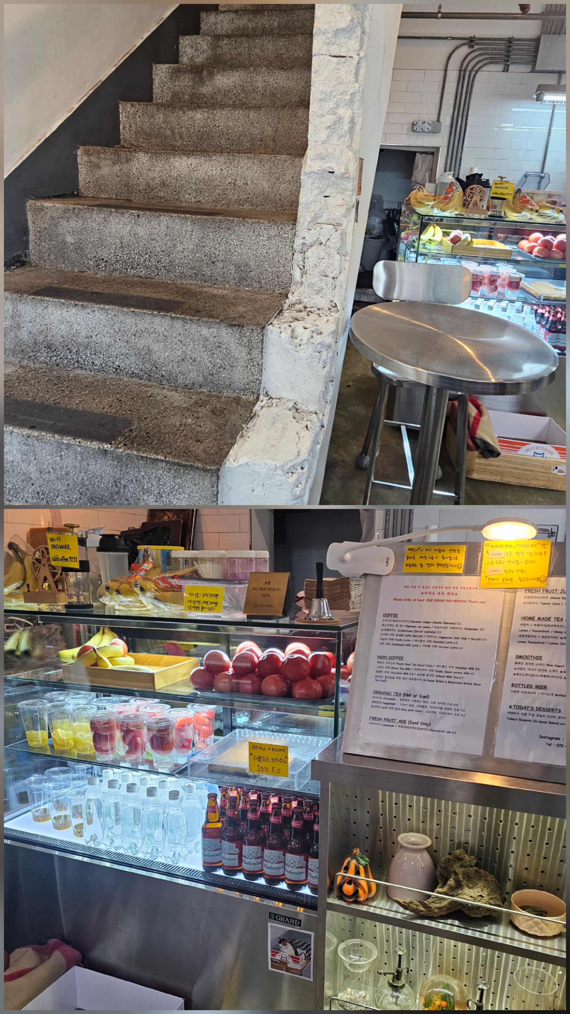 운 좋게도 바로 **옆에 있는 ‘애드 카페(Add Café)’**를 발견!