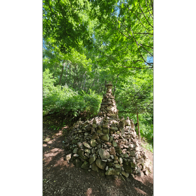 가파르 산길을 200 m 정도 올라가면
