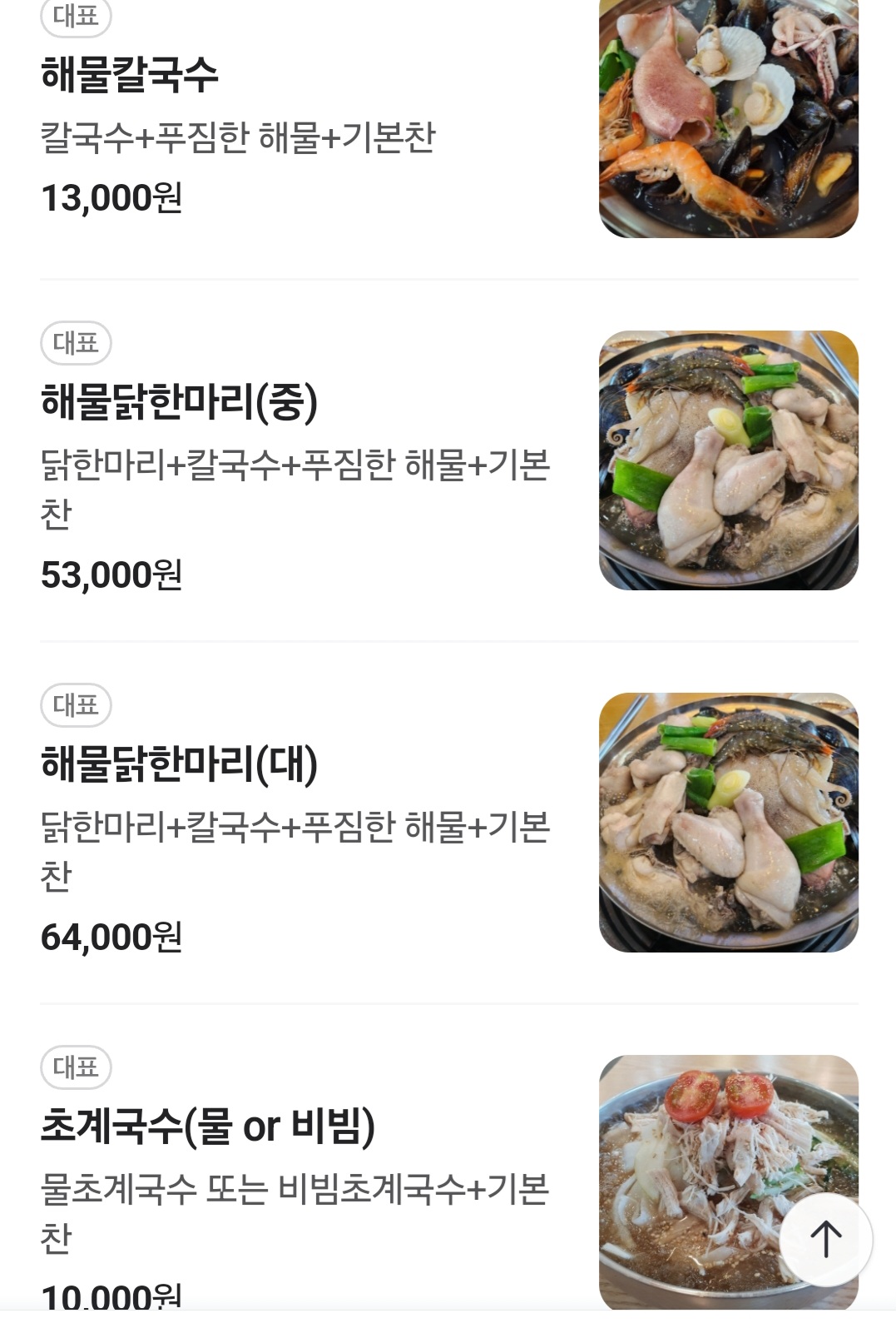 대표메뉴: 해물칼국수, 닭칼국수, 초계국수