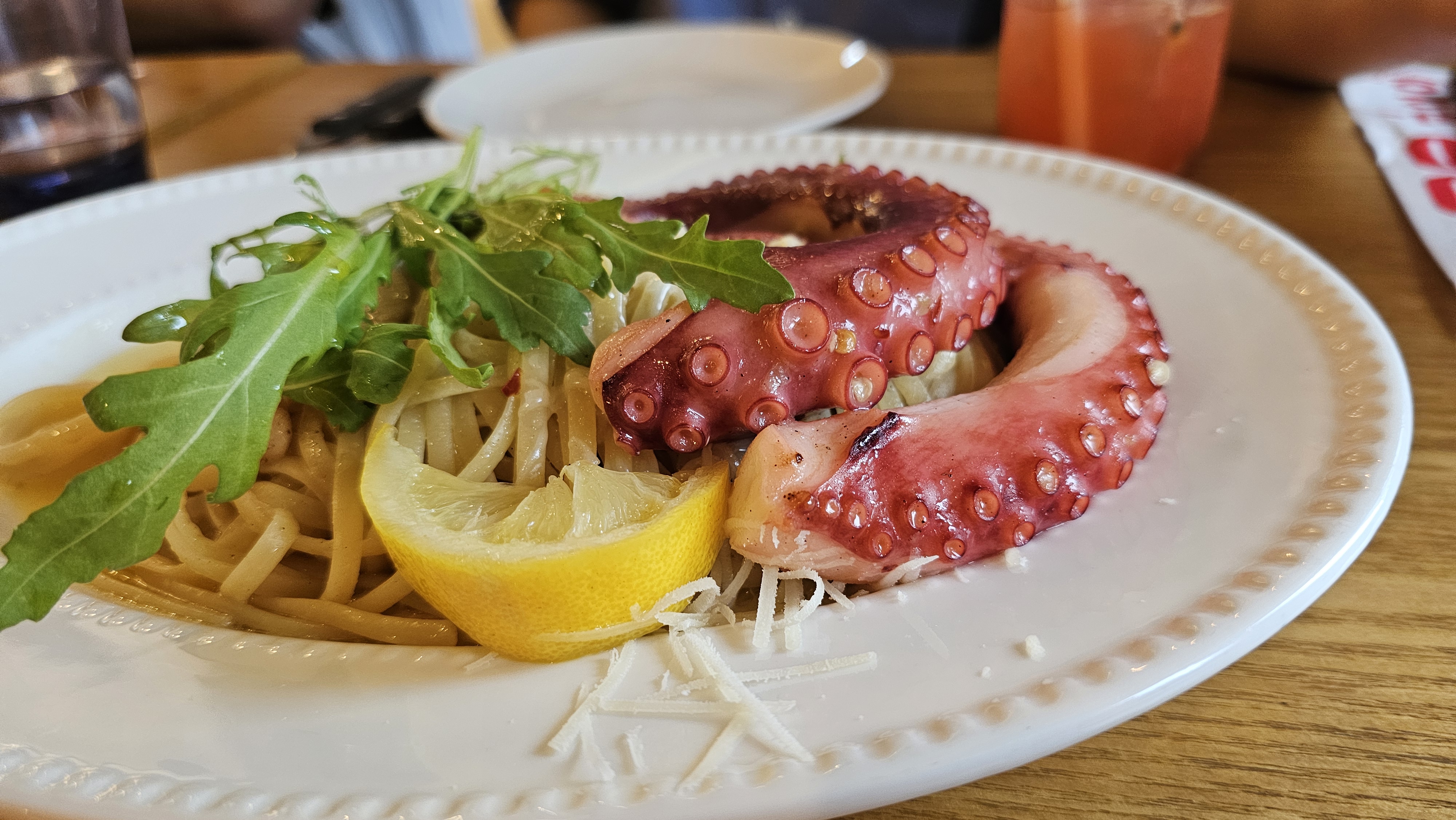 탱글탱글한 문어가 통으로 올라가 있고, 올리브오일과 마늘향이 잘 어우러졌어요.