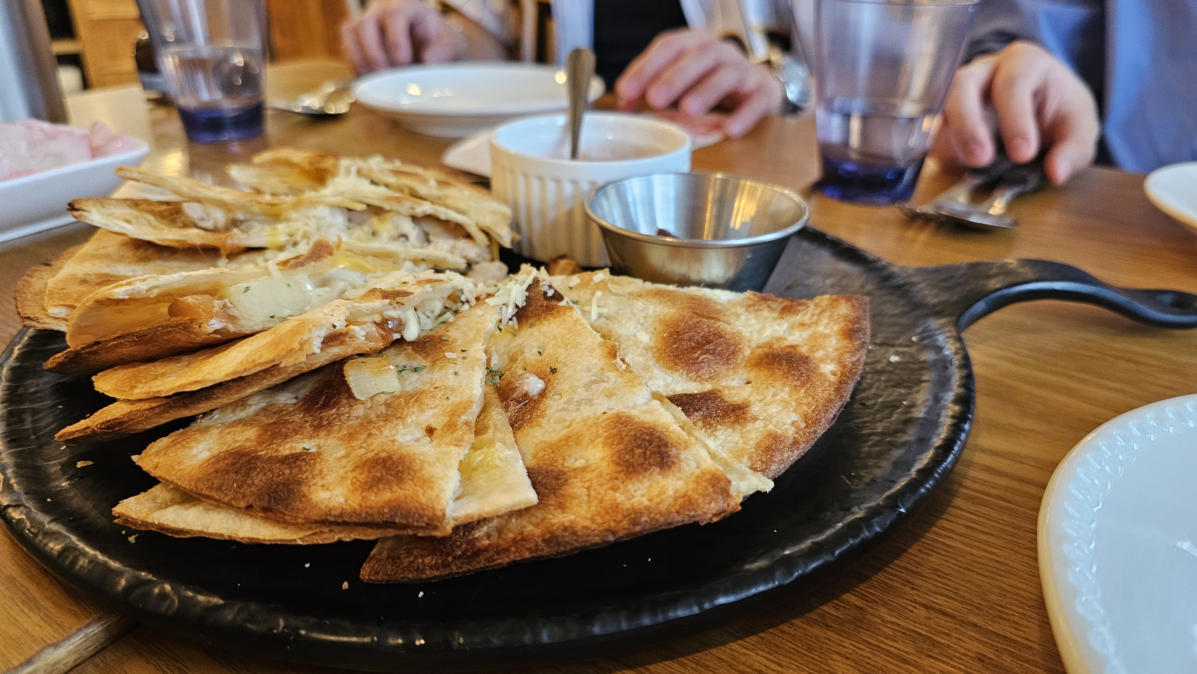 쫄깃한 또띠아 안에 바비큐 치킨과 치즈가 듬뿍 들어간 피자디아!