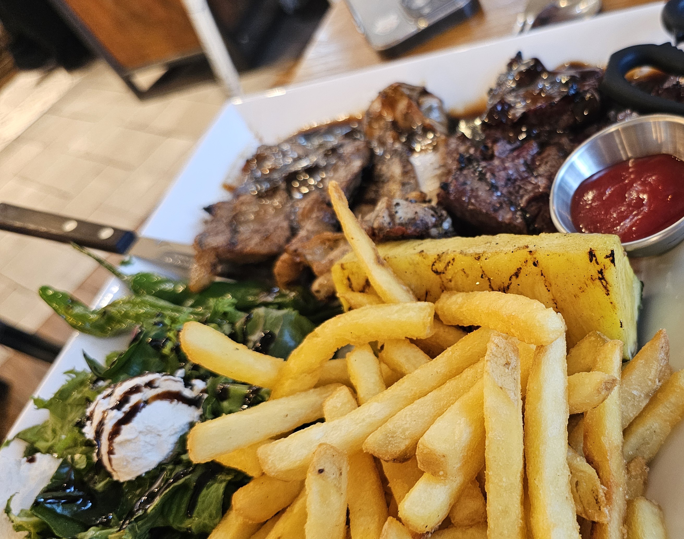 각 부위별 식감 차이를 느끼는 재미도 있었고, 곁들여진 샐러드와 프렌치프라이도 별미였어요.