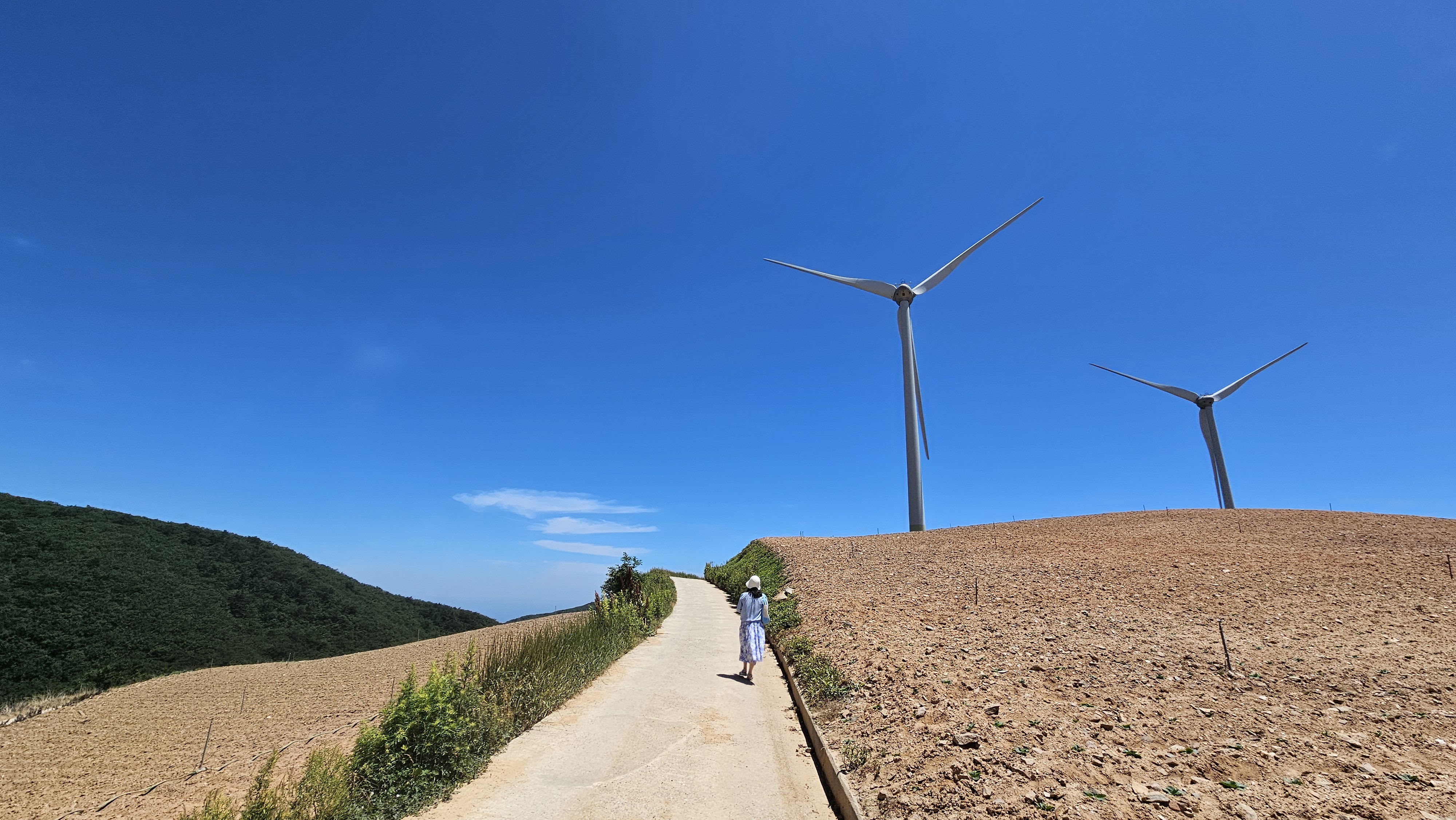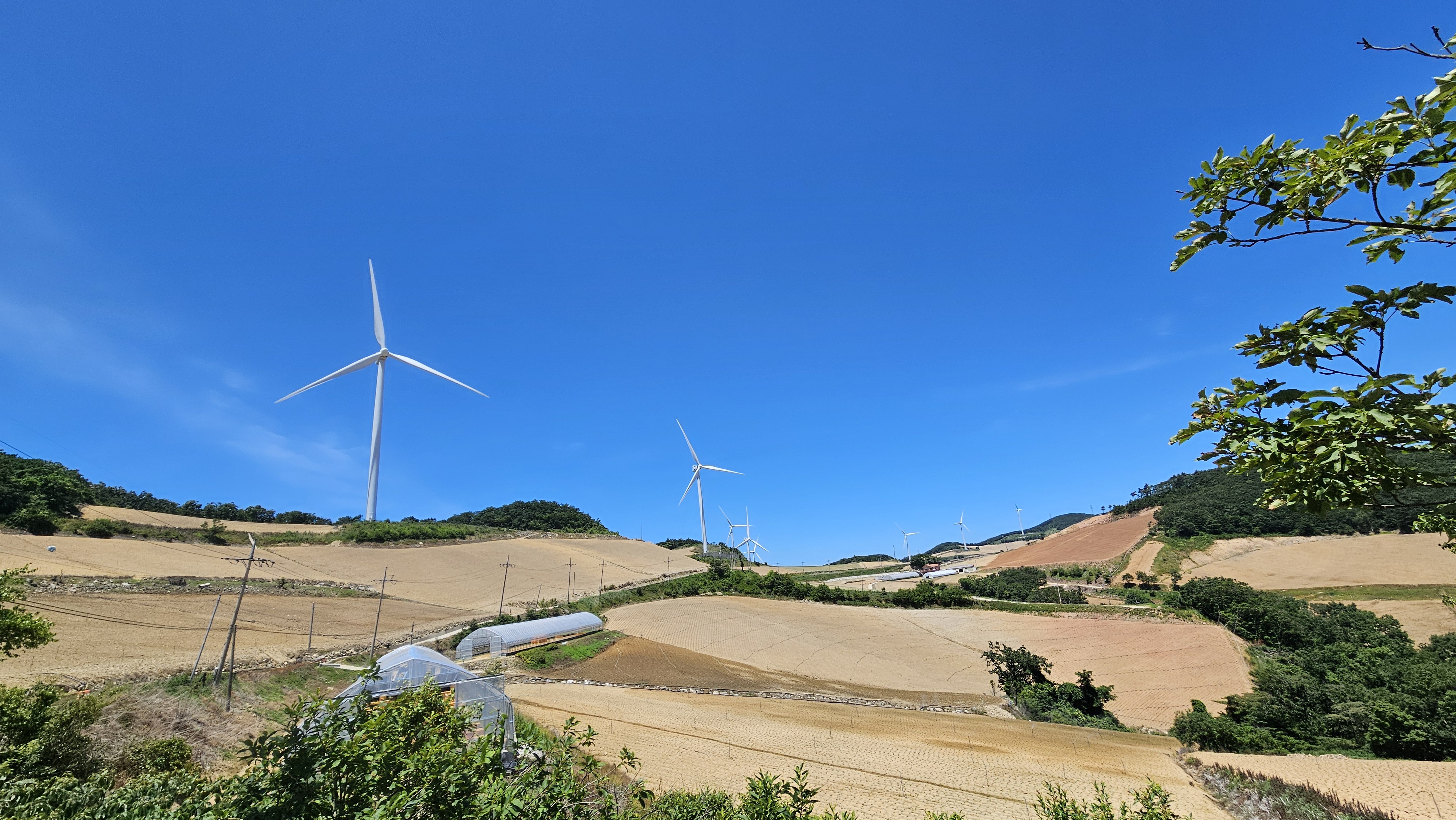 웅장한 풍력 발전기들이 인사하듯 돌고 있었죠. 🌬️