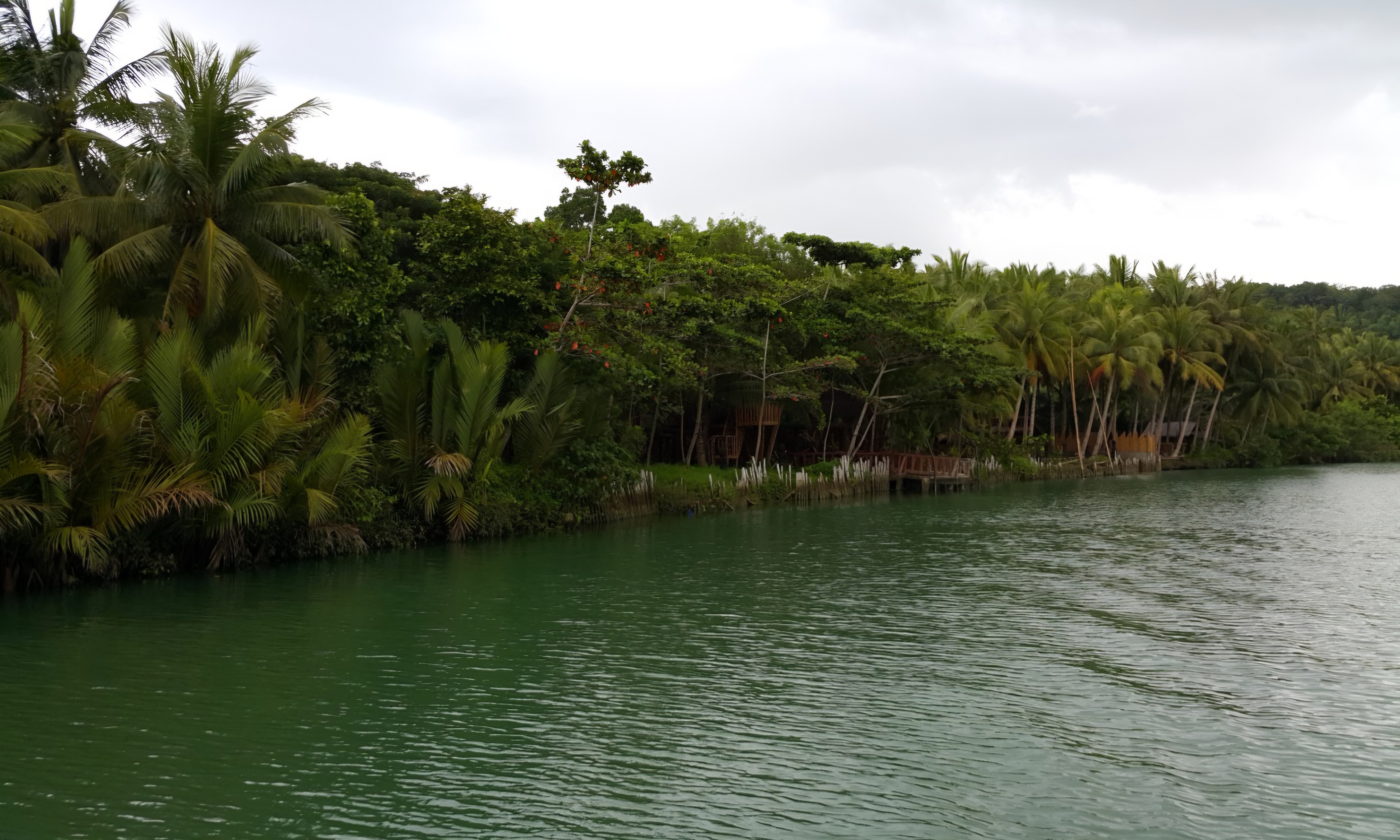 지형적인 특징으로는, 로복강은 열대 우림 사이를 구불구불 흐르며 길게 이어지는 강이에요. 강 양쪽은 산지와 언덕 지형으로 둘러싸여 있어 물줄기가 비교적 안정적이고, 물빛이 맑고 초록빛을 띠는 게 특징이에요. 우기에는 물이 불어나지만 유속이 빠르지 않아서 유람선이 천천히 다니기에 좋아요. 강 너머로는 코코넛 나무와 바나나 나무가 가득하고, 곳곳에 마을과 소규모 농장이 자리잡고 있어요.