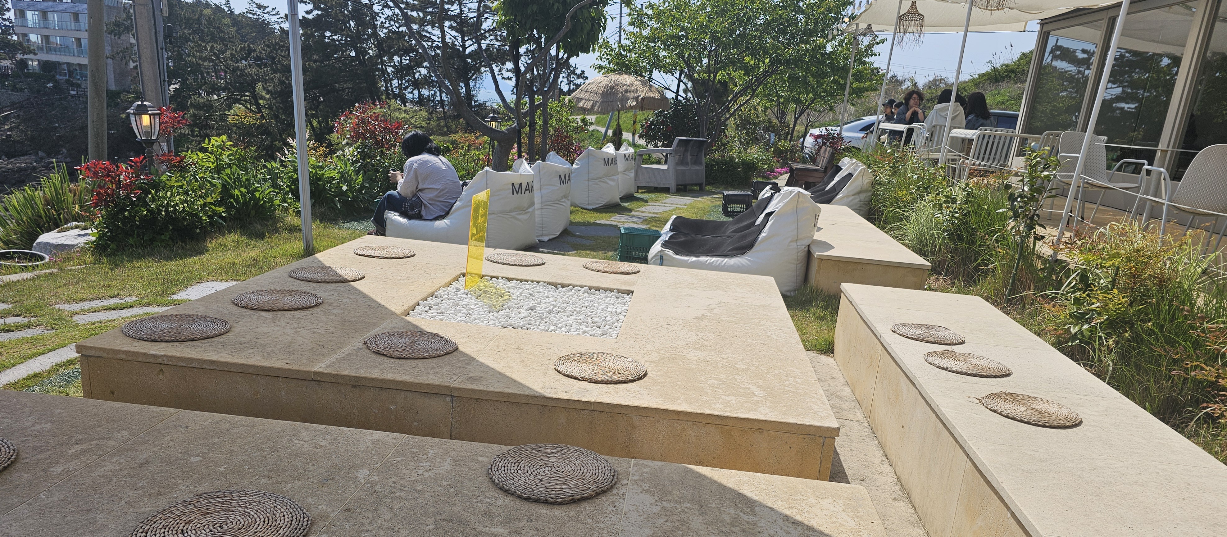 식사 후에는 여유로운 티타임이 빠질 수 없죠! 백합식당에서 차로 3분 거리에 있는 ‘카페 마르’는 채석강 앞 바다를 한눈에 내려다볼 수 있는 뷰맛집이에요.