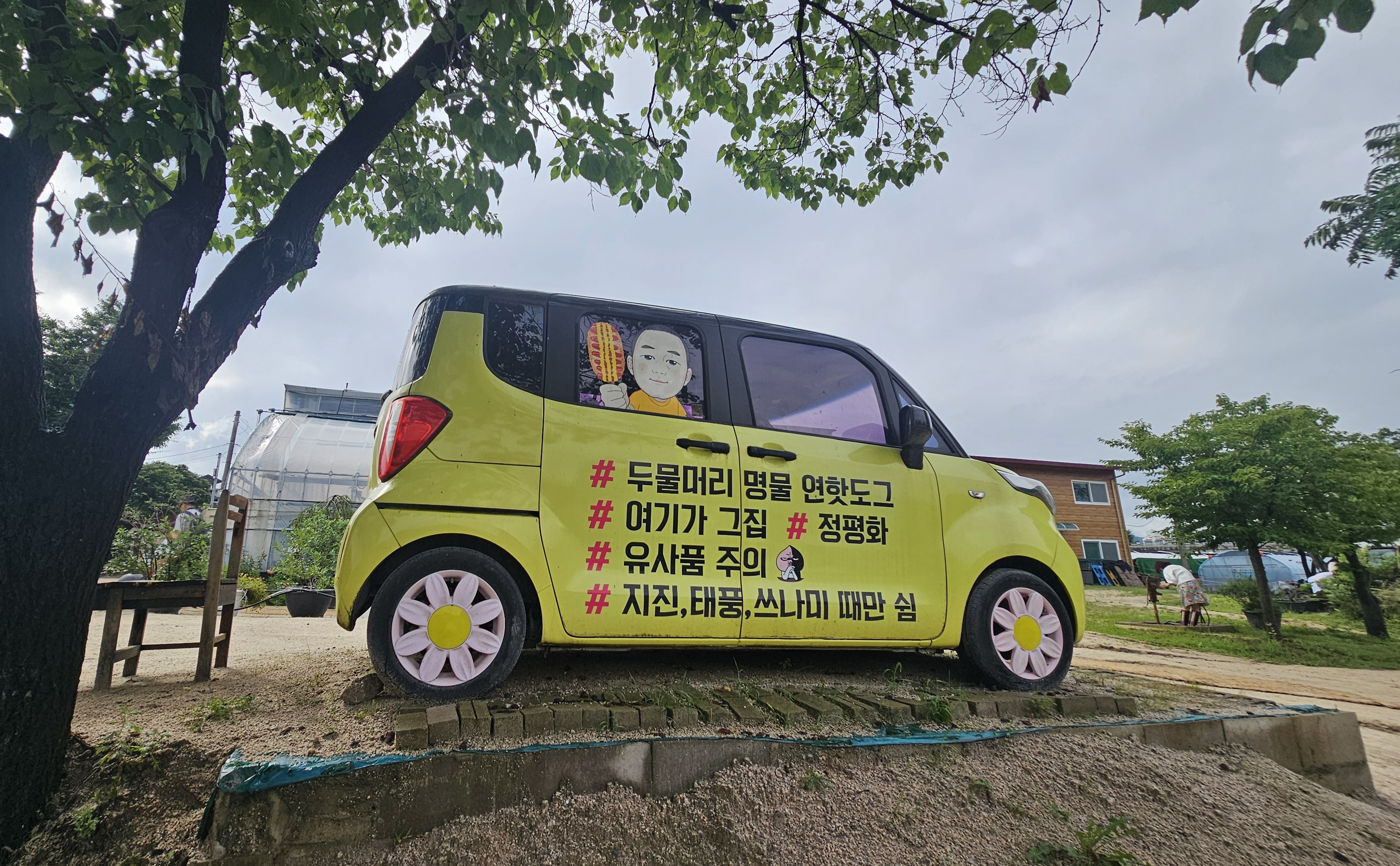 귀여운 캐릭터 간판과 노란차는 이미 인증샷 필수 코스📸