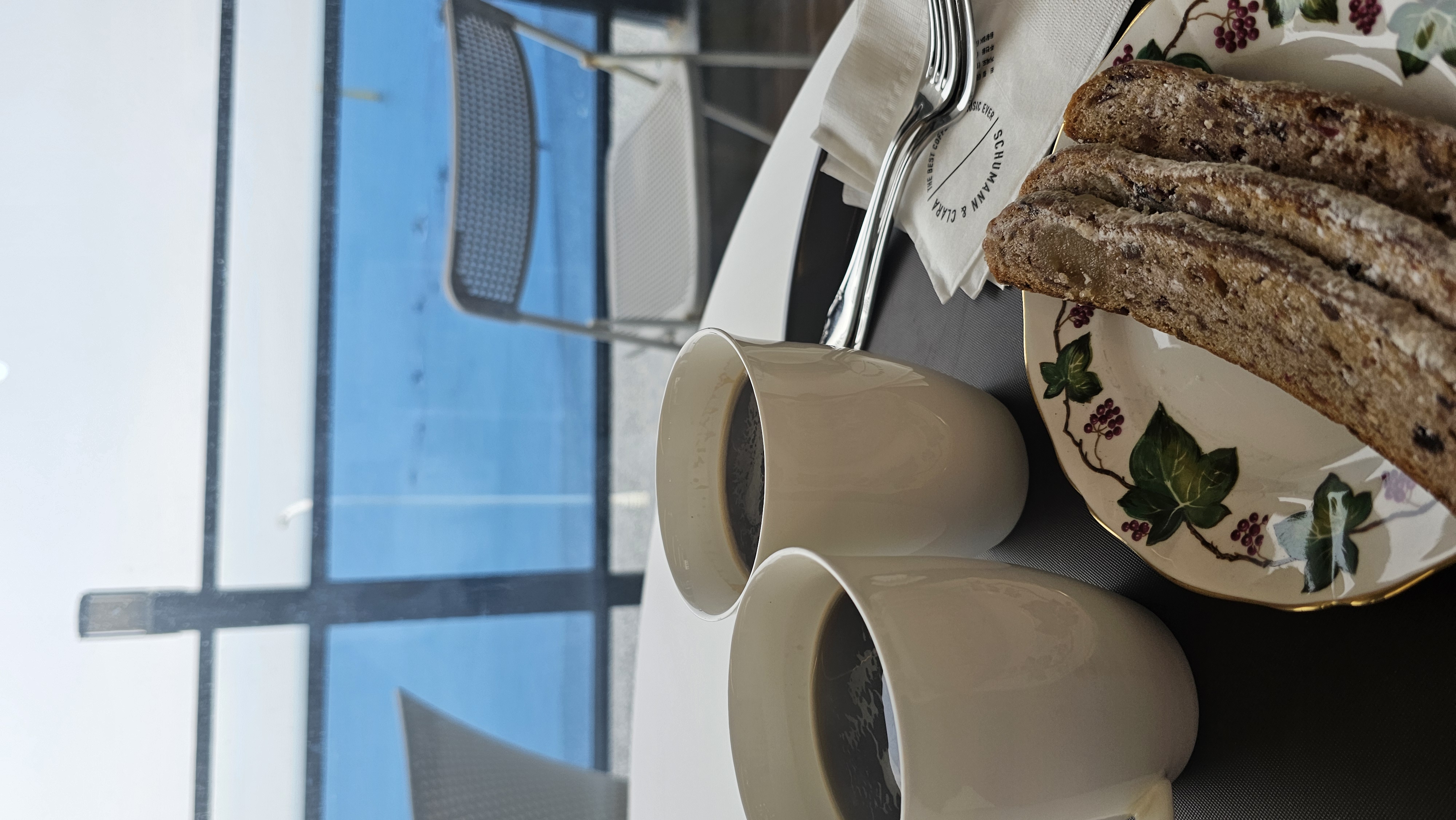 슈톨렌은 독일 크리스마스 빵으로, 럼에 절인 건포도와 견과류가 가득하고 겉은 슈가파우더로 덮여 있어요. 묵직하고 촉촉하며, 숙성될수록 맛이 깊어져 크리스마스를 기다리며 조금씩 즐기는 특별한 빵입니다. 시그니처 메뉴로 소개해주셔서 커피와 함께 처음 먹어 보았어요.