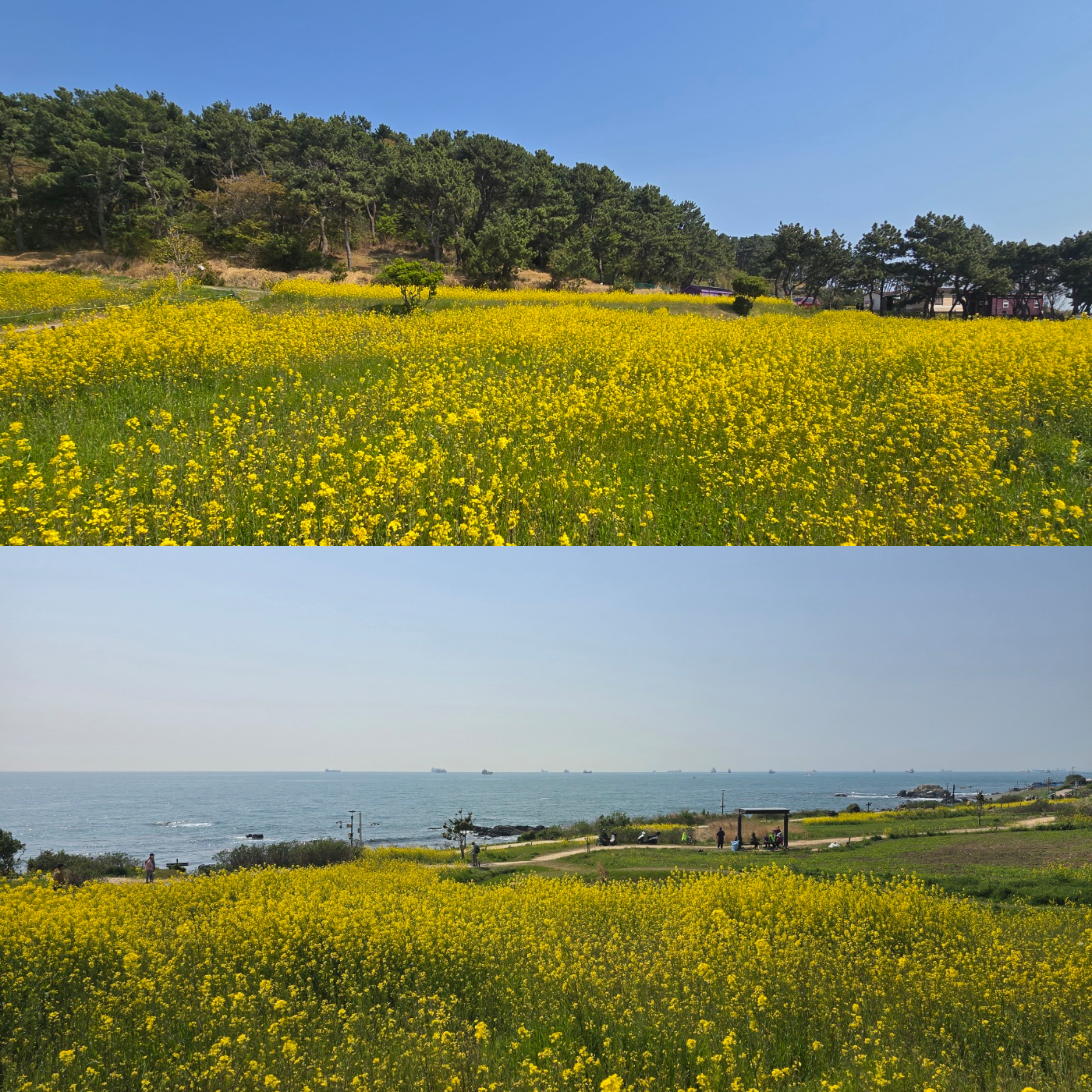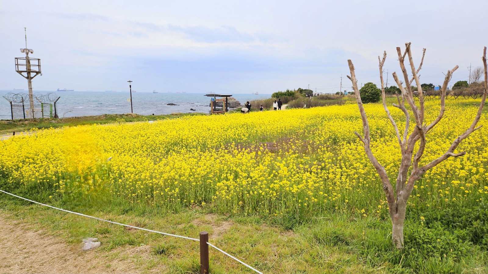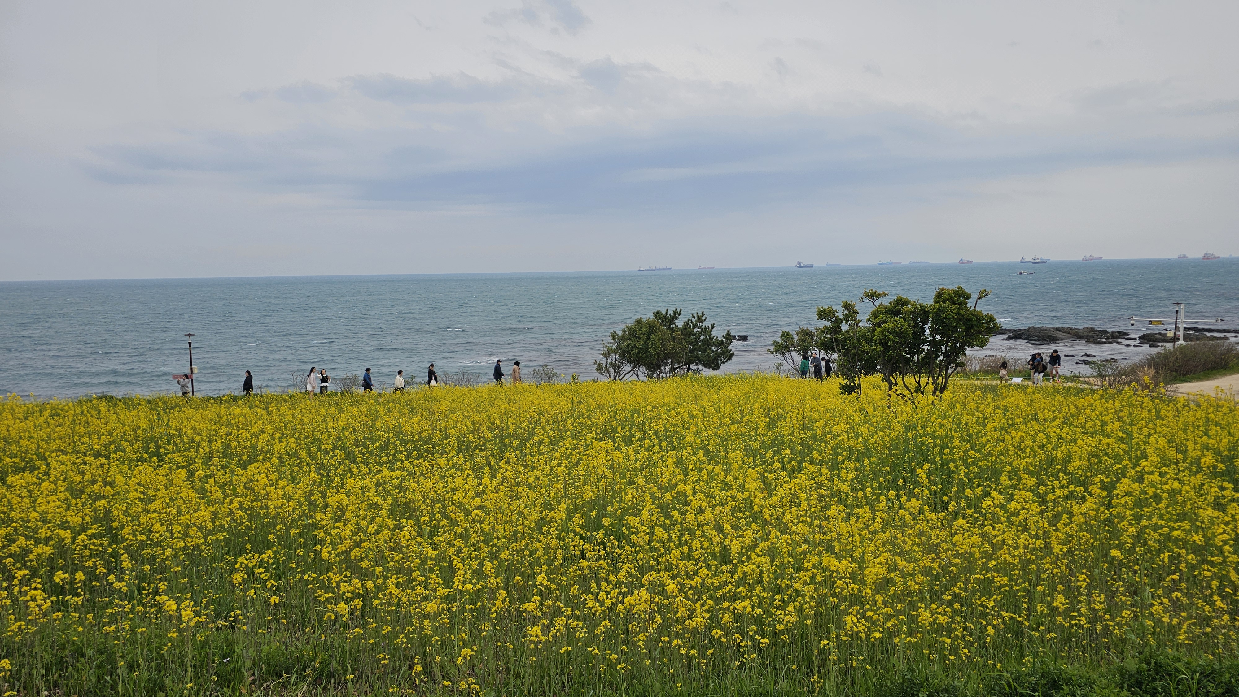관광객도 적당히 있어서 혼잡하지 않았고, 햇살 + 바람 + 꽃 + 바다 조합으로 완벽한 산책이었어요. 4월 중순이 유채꽃 만개라 별 기대 없이 갔는데, 상상 이상 좋았답니다.