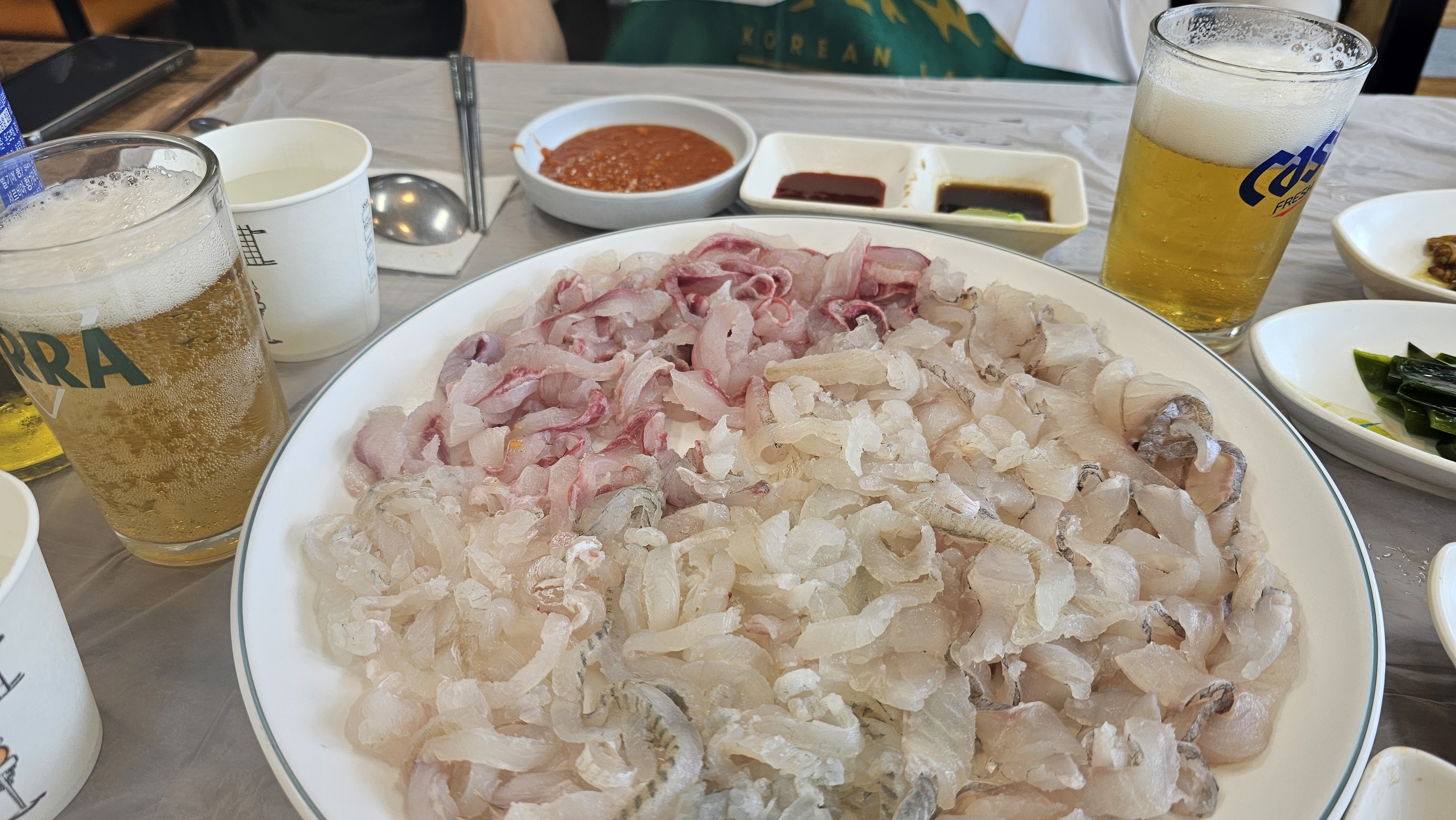 무엇보다 회가 쫄깃하고 입안에서 사르르 녹는 식감이 최고였어요. 살아있는 활어를 그 자리에서 바로 손질해주시니 신선함이 남다르죠.