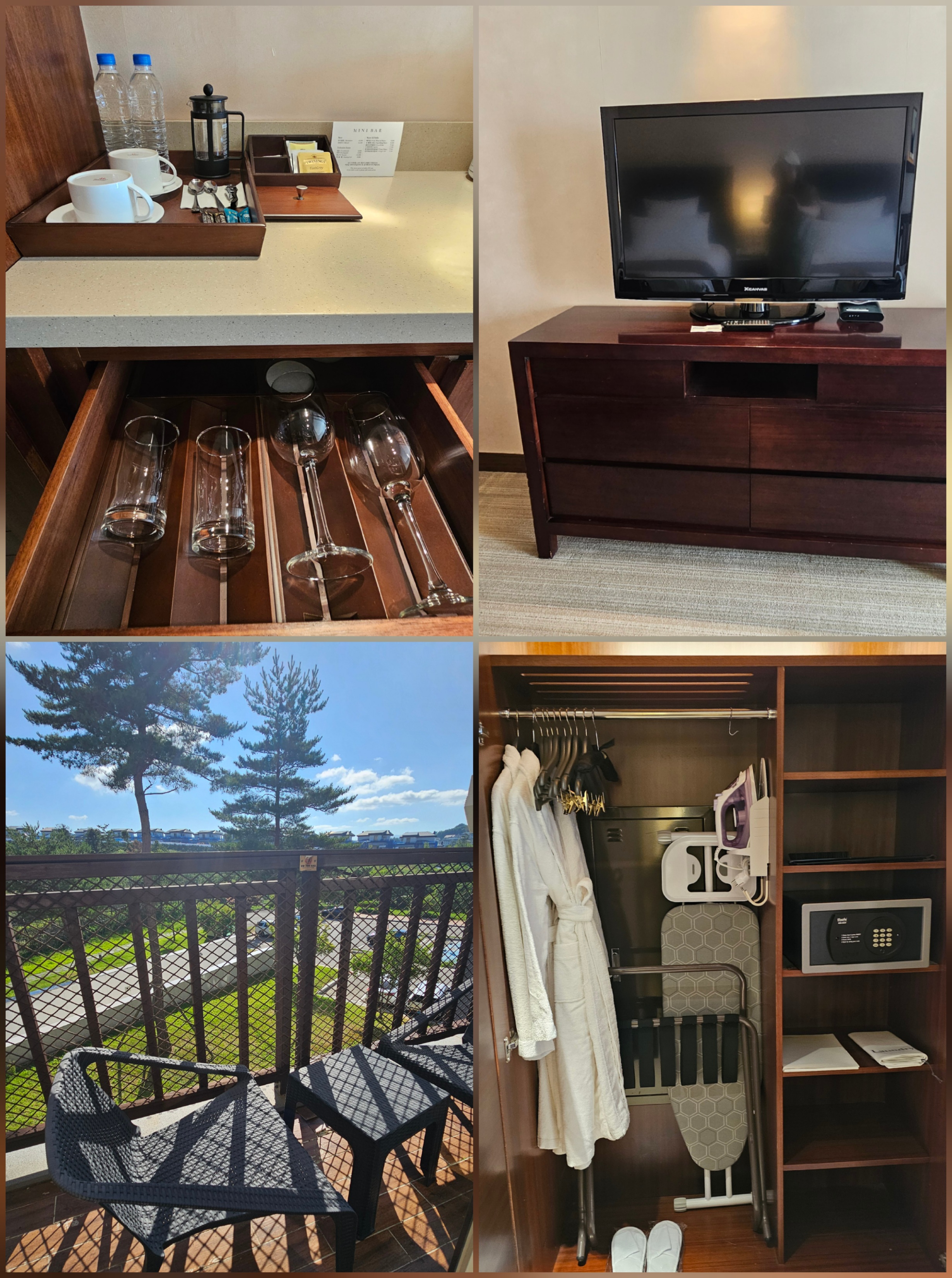 비품: 생수 2병, 전기포트, 머그컵, 슬리퍼, 금고, 냉장고 등 풀세팅