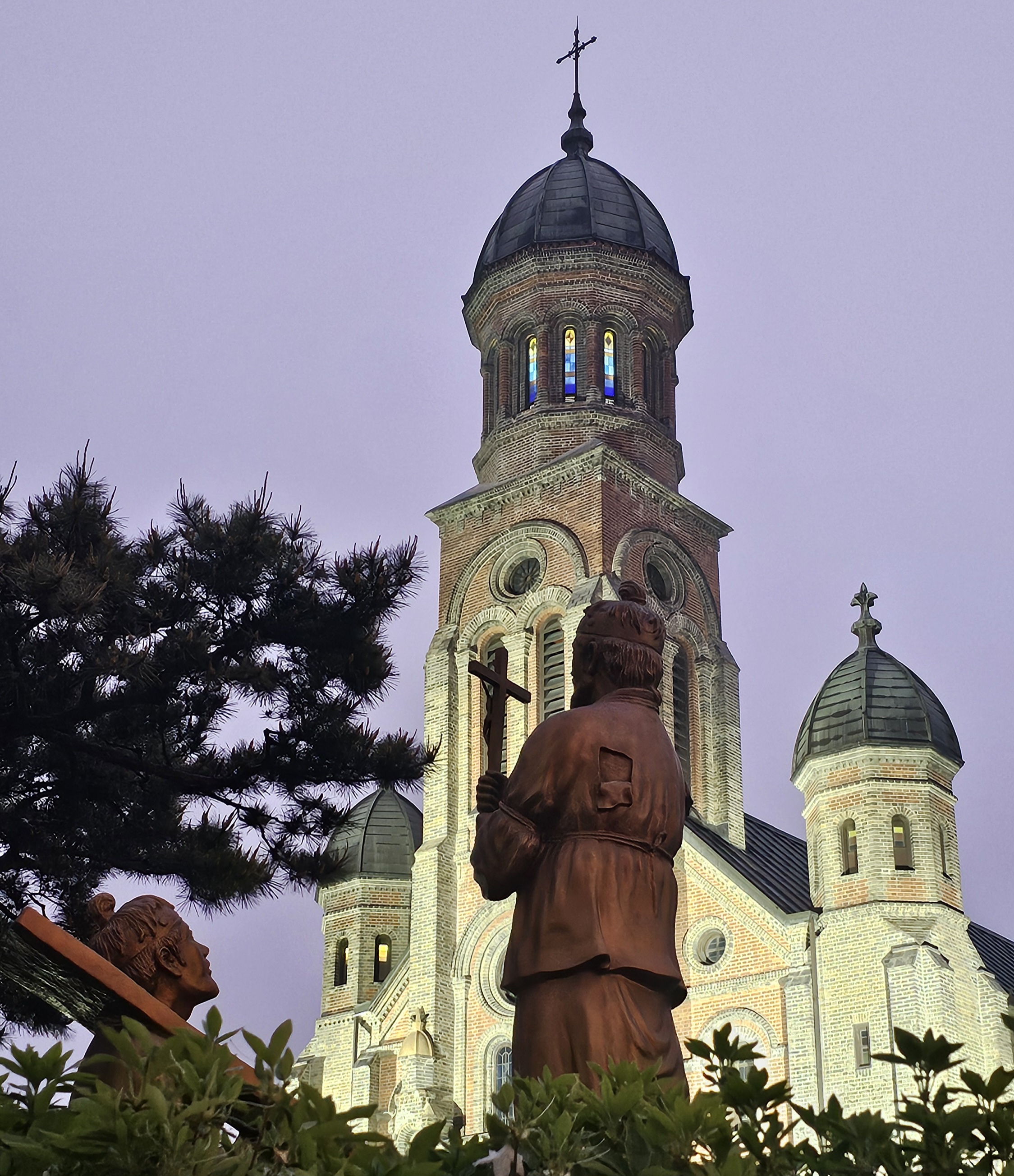 붉은 벽돌 성당 + 은은한 조명