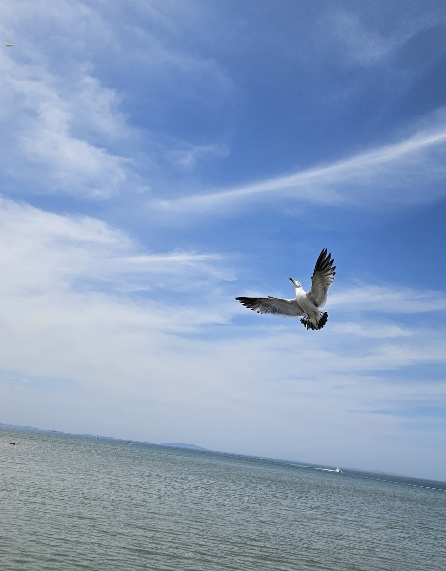 썰물이라 바위 주변이 드러나 있었고, 바다와 하늘, 그리고 저 멀리 케이블카가 어우러진 풍경이 정말 근사했어요. 🚶‍♀️🌊 걷는 내내 시원한 바닷바람이 기분까지 상쾌하게 만들어준, 제부도만의 매력이 가득했던 순간이었습니다.