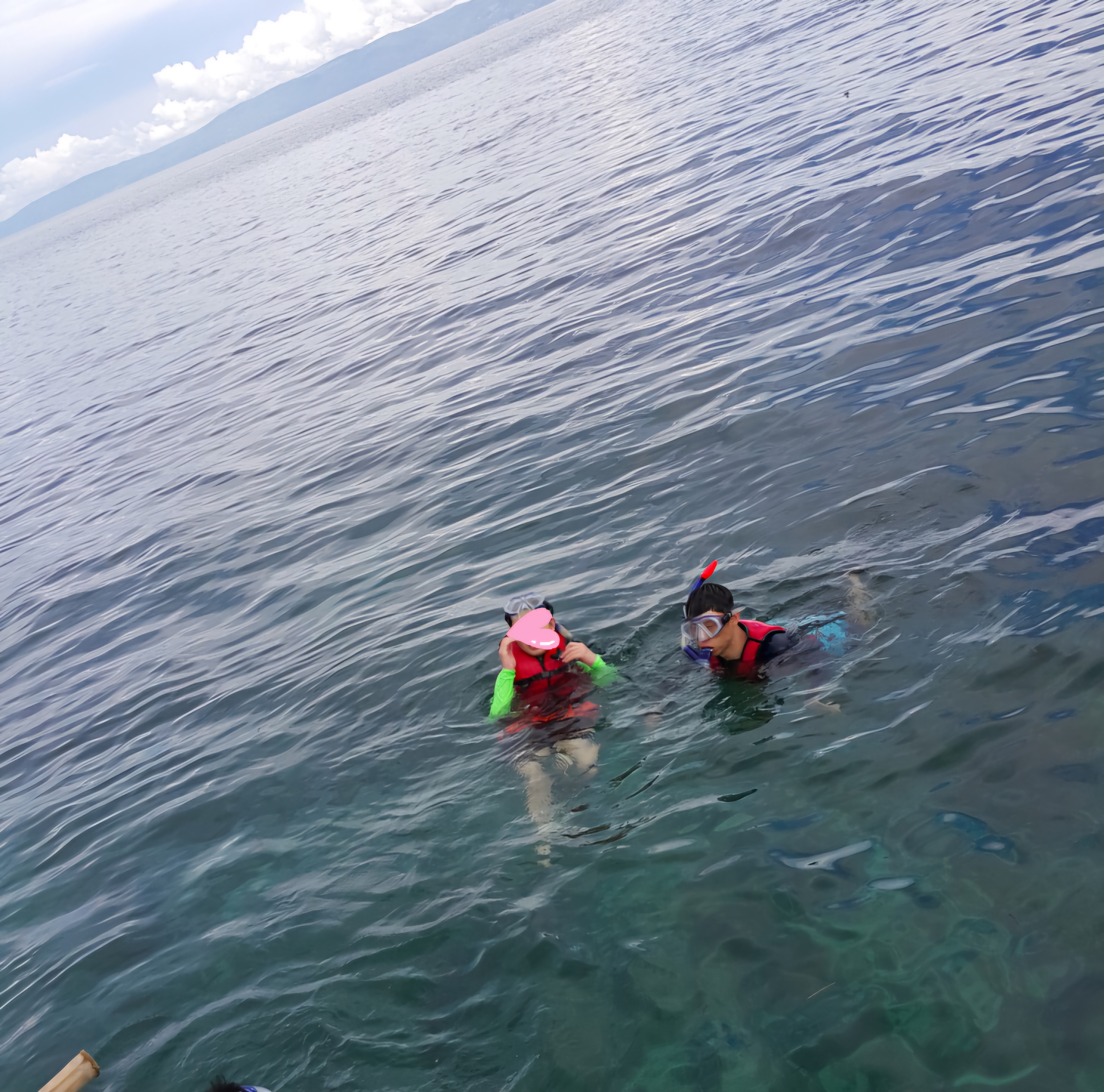 스노클링 포인트에 도착해 구명조끼를 입고 바다에 들어가면,