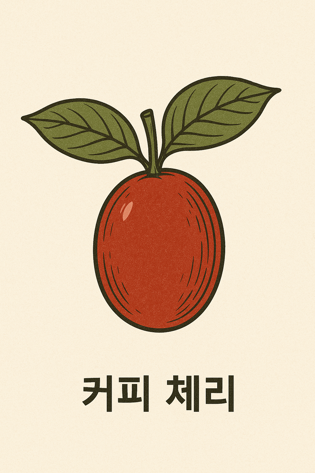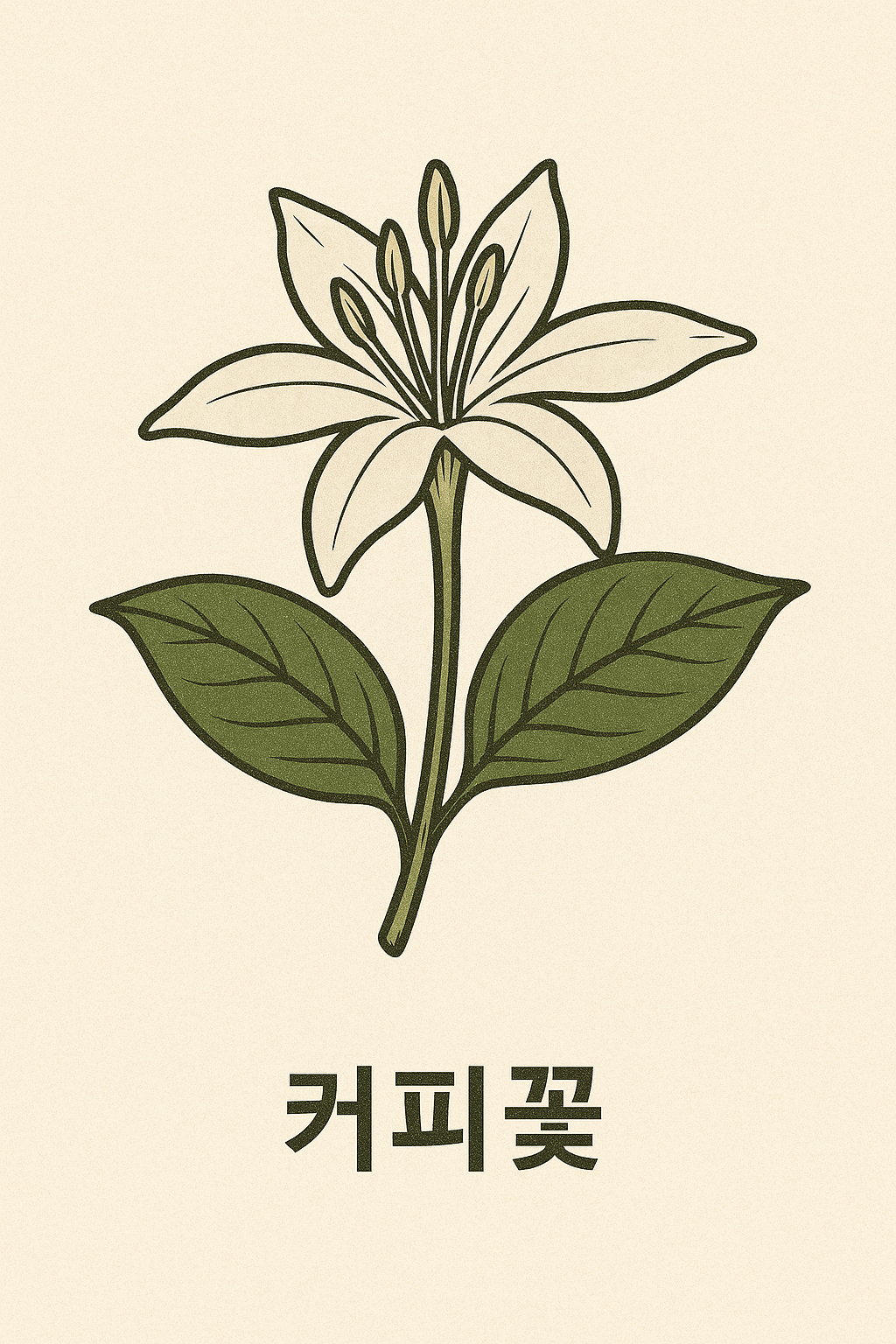 커피나무는 일년에 한 번 꽃을 피우고, 그 꽃이 자라면서 열매인 커피체리가 됩니다. 커피 한 잔이 만들어지기까지는, 이렇게 자연의 정성과 시간이 녹아 있죠.