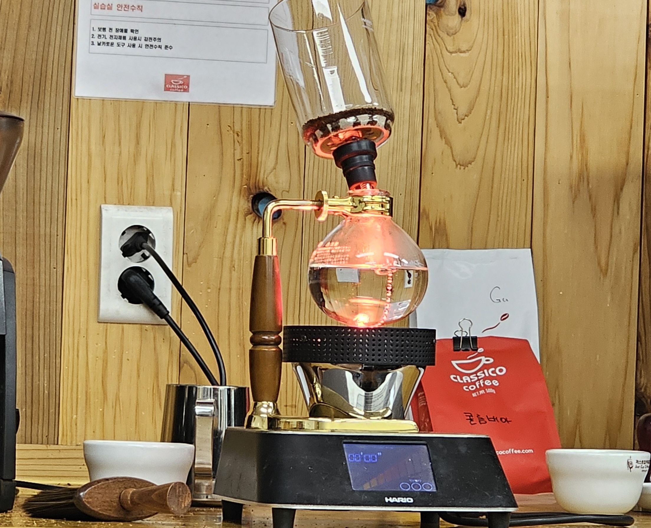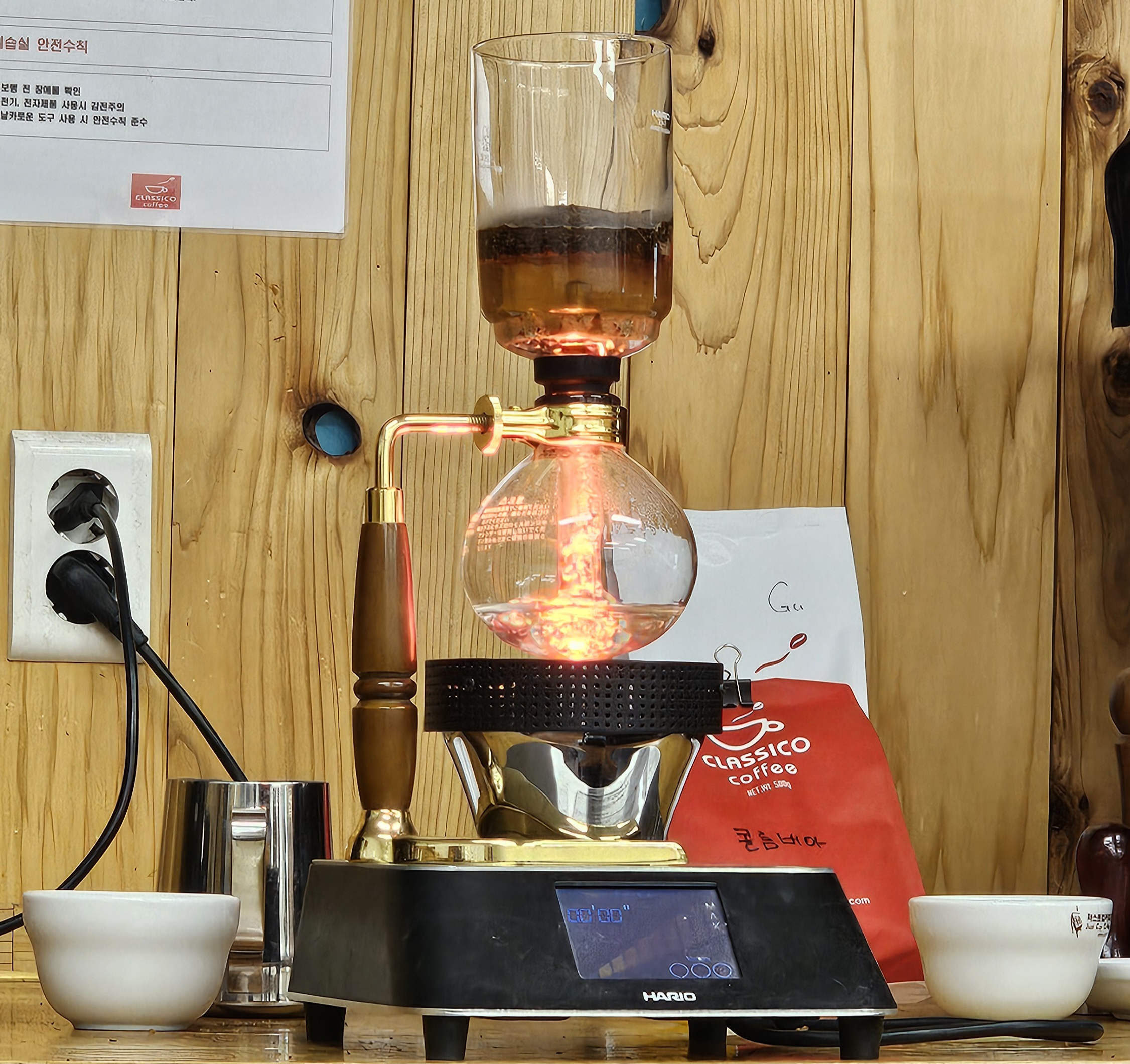**사이폰(Siphon)**은 과학 실험실 같은 커피 도예요.