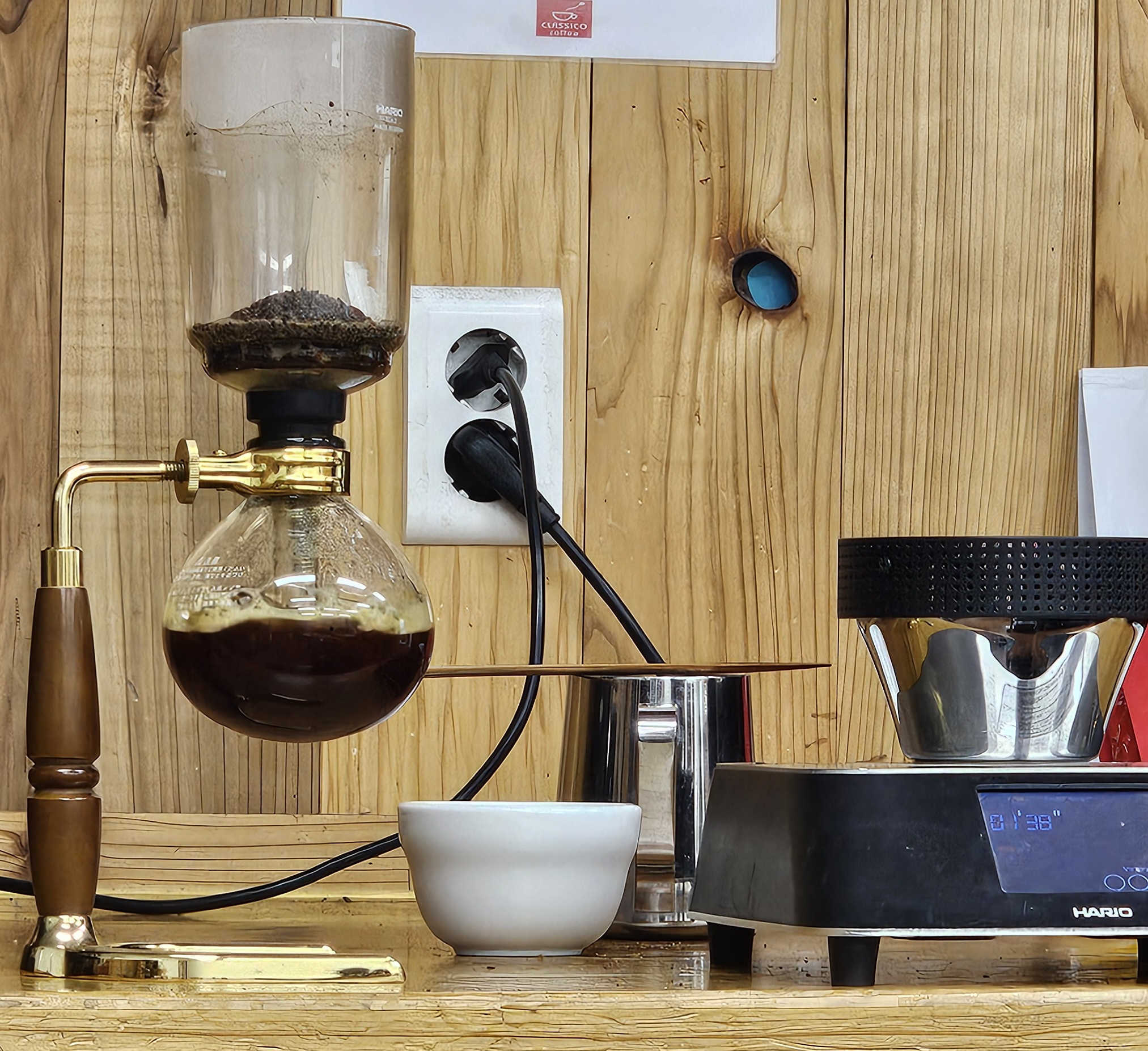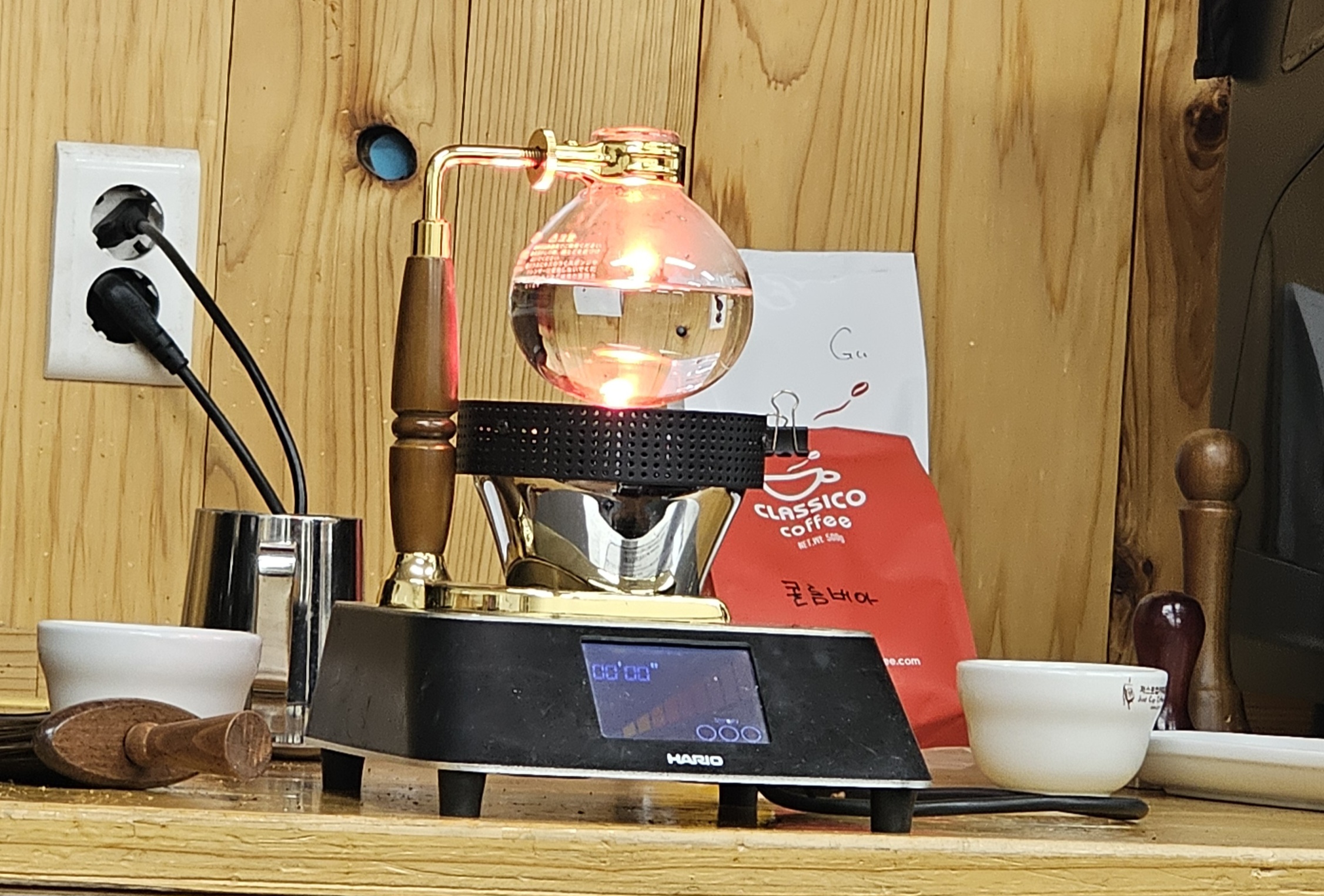 **사이폰(Siphon)**은 과학 실험실 같은 커피 도예요.