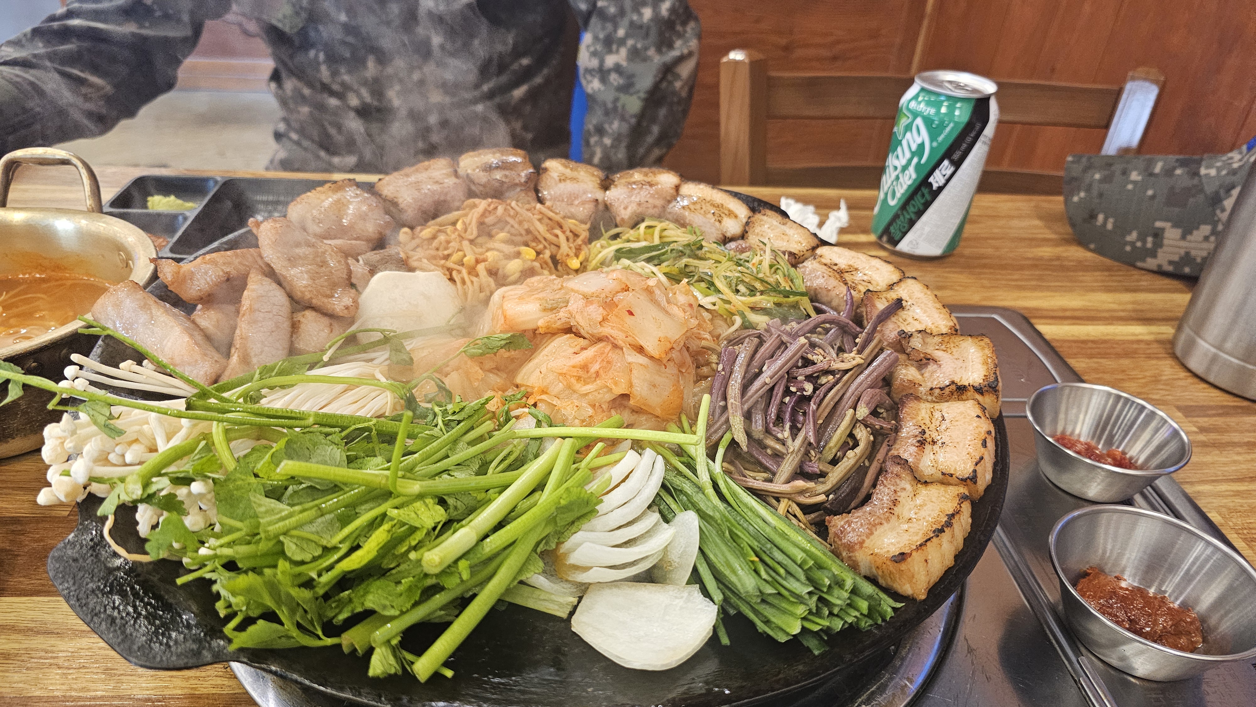 🥬 푸짐한 곁들임: 미나리제외, 고사리 콩나물 부추등 각종야채 무한리필!