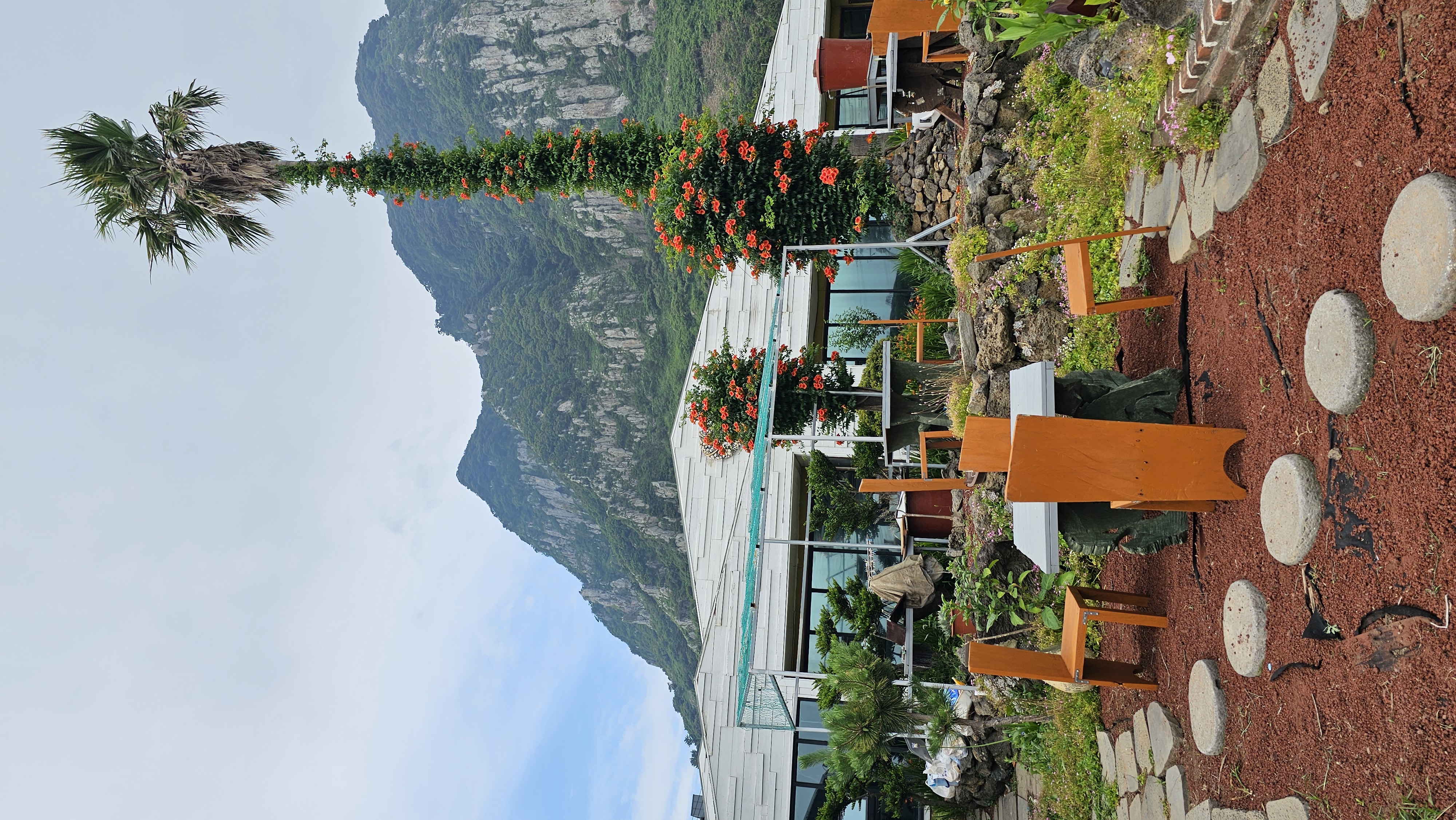 창가에 앉으니 산방산과이 배경처럼 펼쳐졌고,