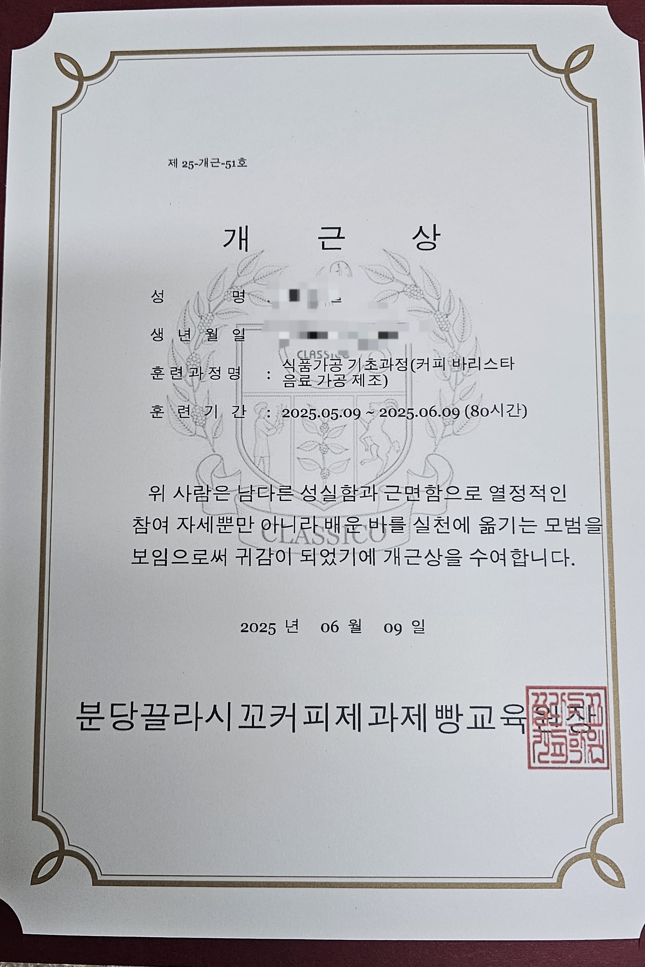 #바리스타자격증 #분당커피학원 #카페끌라시꼬 #2급바리스타 #개근상받음 #커피지도사자격증 #과정형평가 #바리스타시험후기 #라떼아트연습중 #커피기록