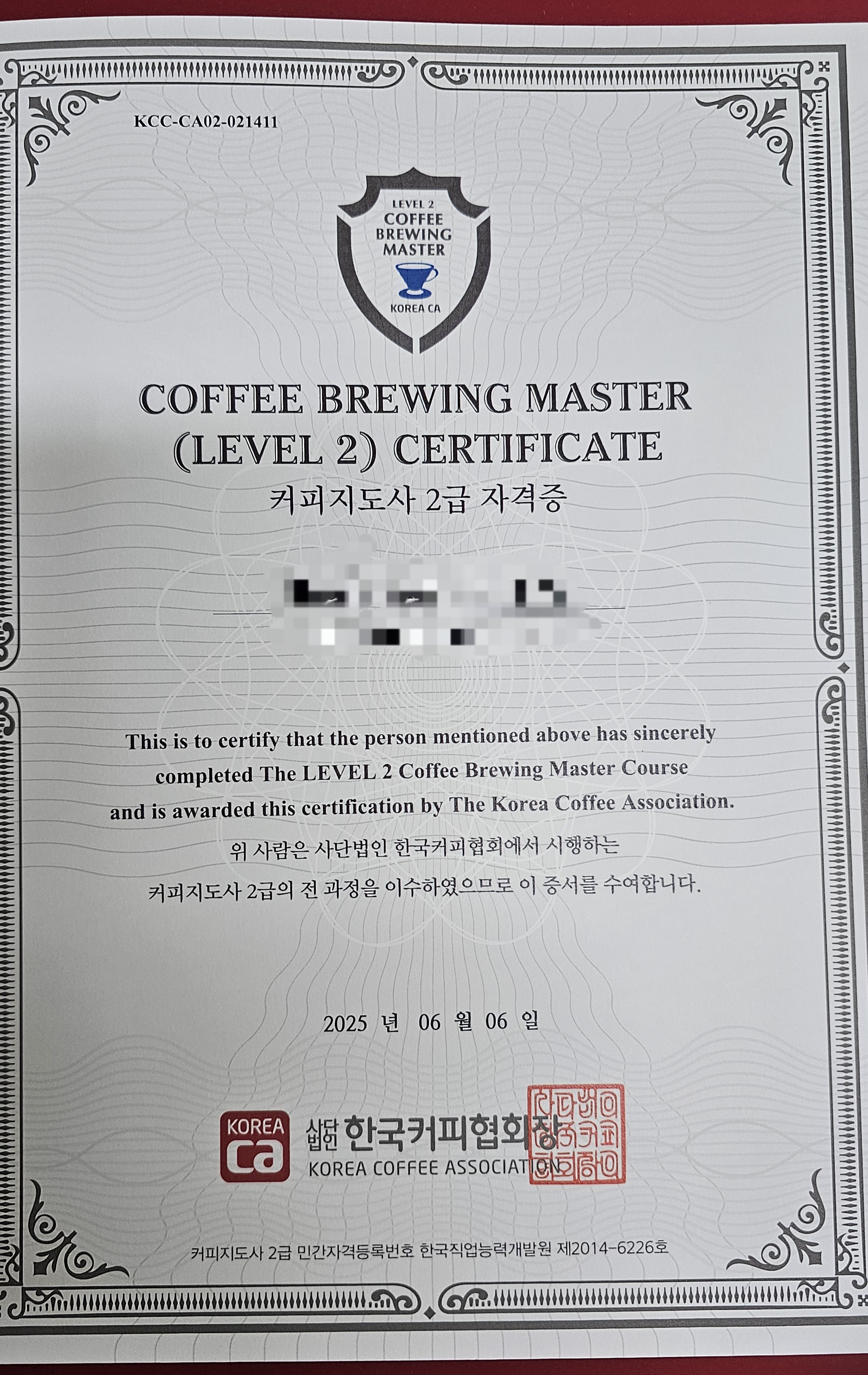 2급 커피지도사 자격증도 동시에 취득할 수 있었어요.