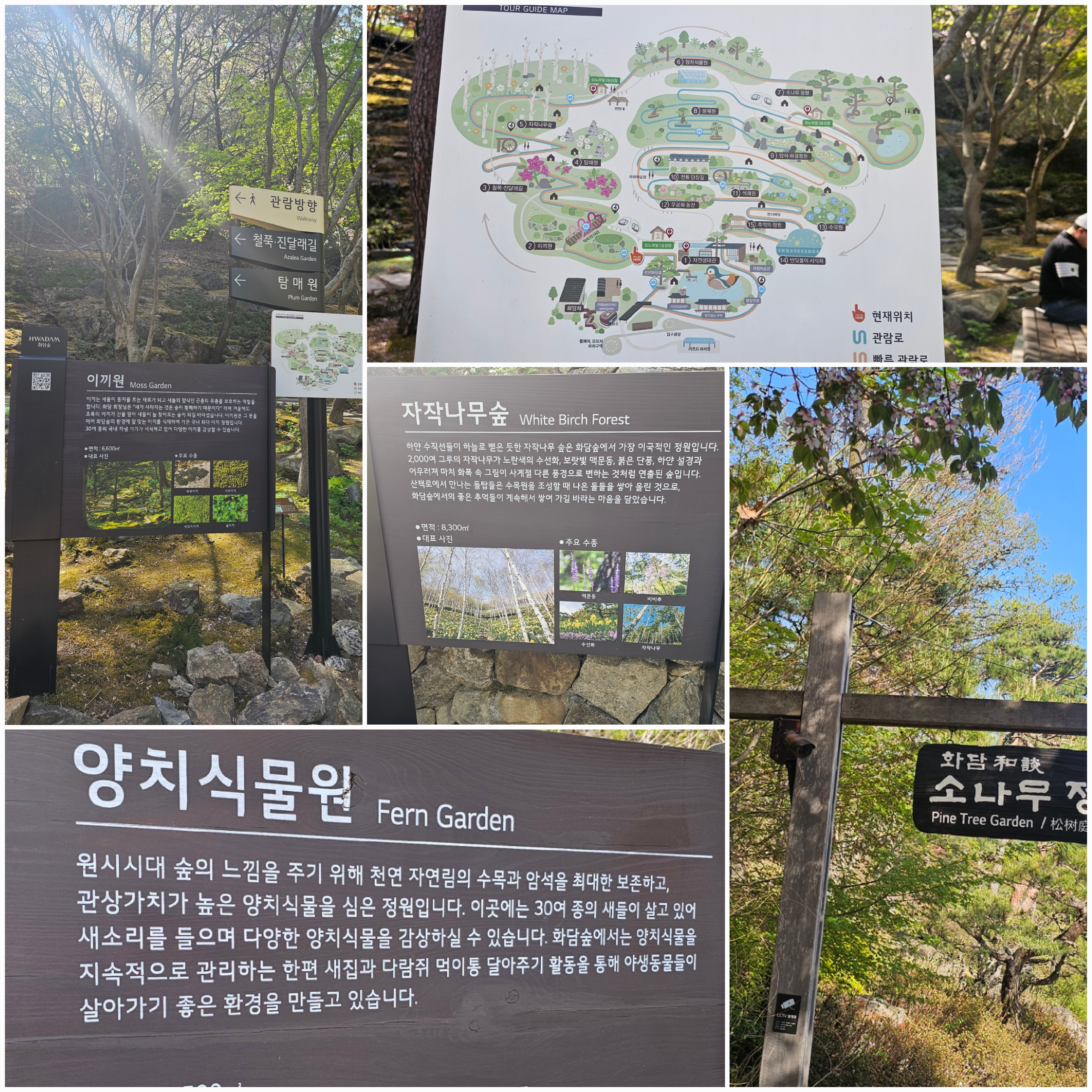코스 구성: 입장 → 수련원 → 자작나무숲 → 이끼원 → 덩굴식물원 → 반딧불이원 → 철쭉/수국길 → 야생화언덕 → 출구