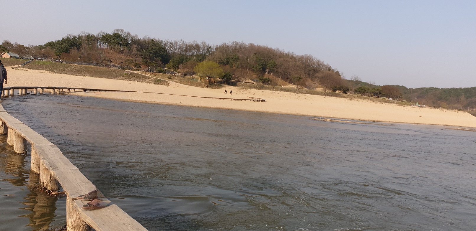 외나무다리는 비 오는 날 미끄러우니 운동화 필수