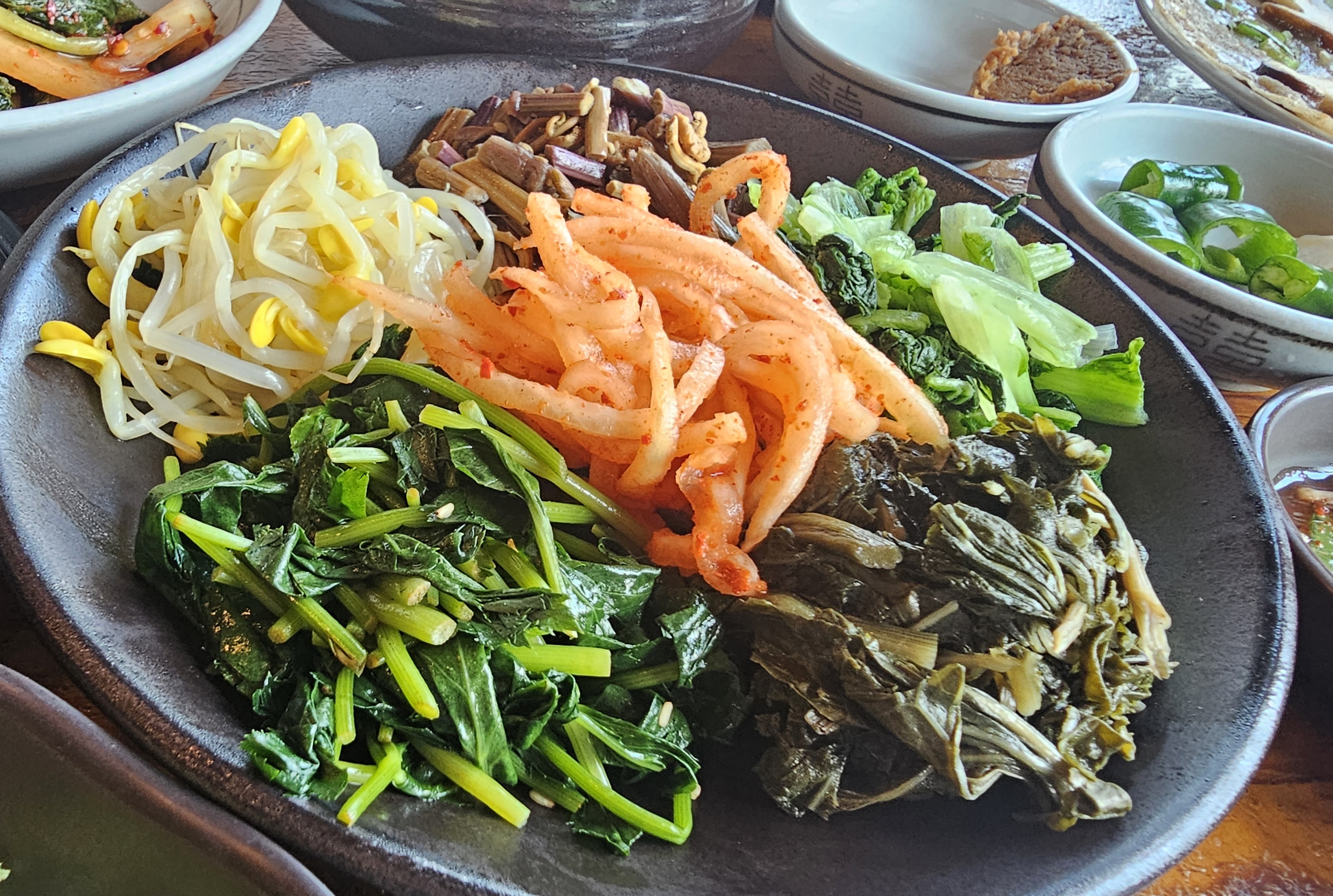 잡내 없이 깔끔하게 삶아져서 나물과 함께 쌈 싸 먹기에 딱 좋았고, 보리밥은 꽁보리로 지어져 고소하면서도 씹는 맛이 살아 있었어요.