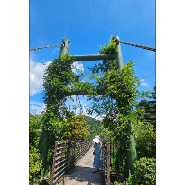 토요일 아침 7시에 분당에서 출발했어요. 여름 산책을 위해 조금 일찍 움직였는데, 도로가 한산해서 8시 반쯤 가평 아침고요수목원에 도착했어요. 이른 시간이라 공기도 맑고, 수목원 입구부터 초록빛이 반겨줬어요. 추천 코스는 구름다리 쪽으로 크게 도는 길이었지만, 우리는 무궁화 동산을 지나 선녀탕 쪽으로 먼저 향했어요. 숲속 길을 걷는 동안 새소리와 바람 소리가 어우러져 마음이 편안해졌어요.
