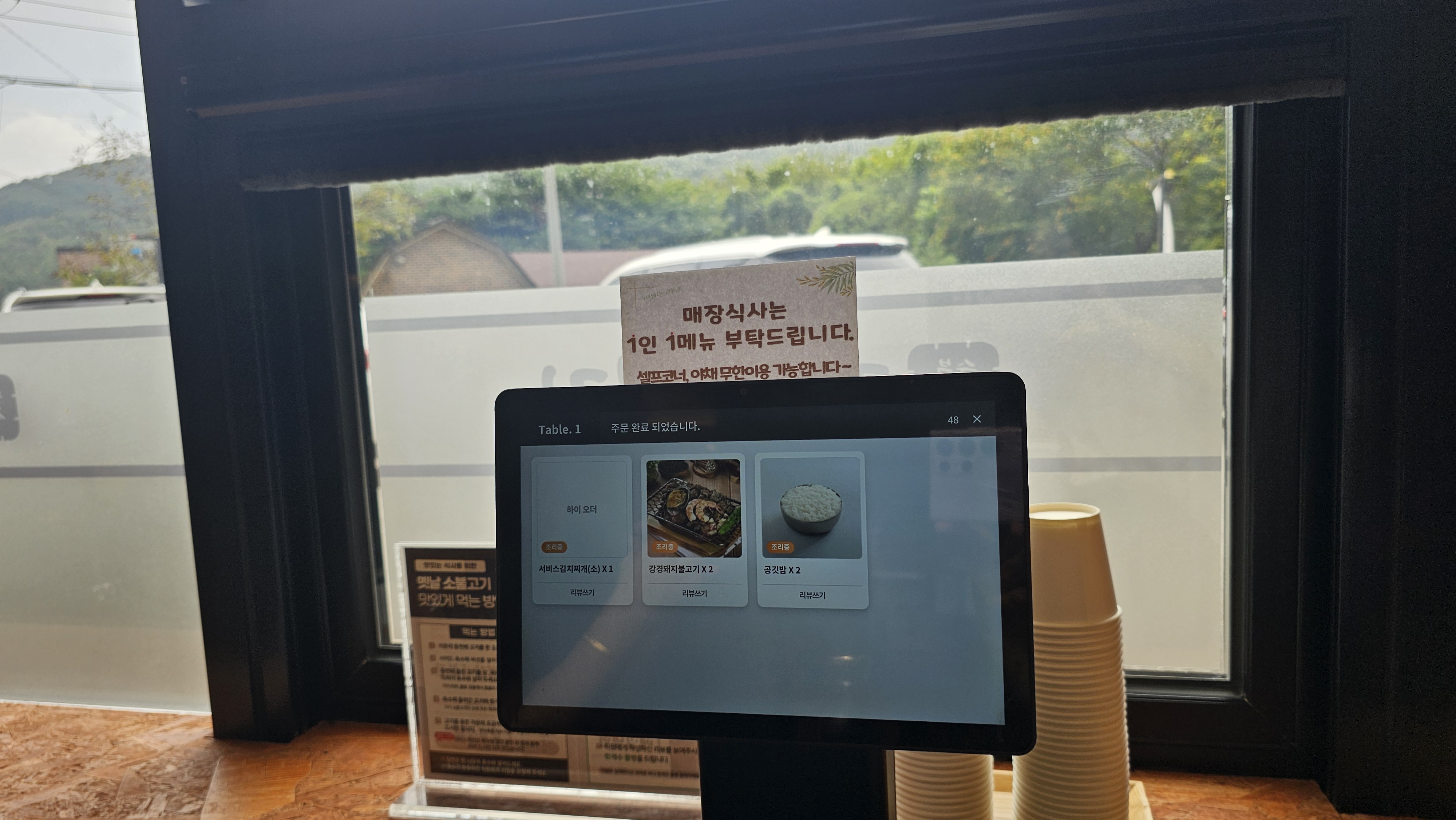 외관은 우드톤으로 깔끔하고 따뜻한 분위기, 내부는 넓고 환해서 점심시간에도 쾌적했어요.