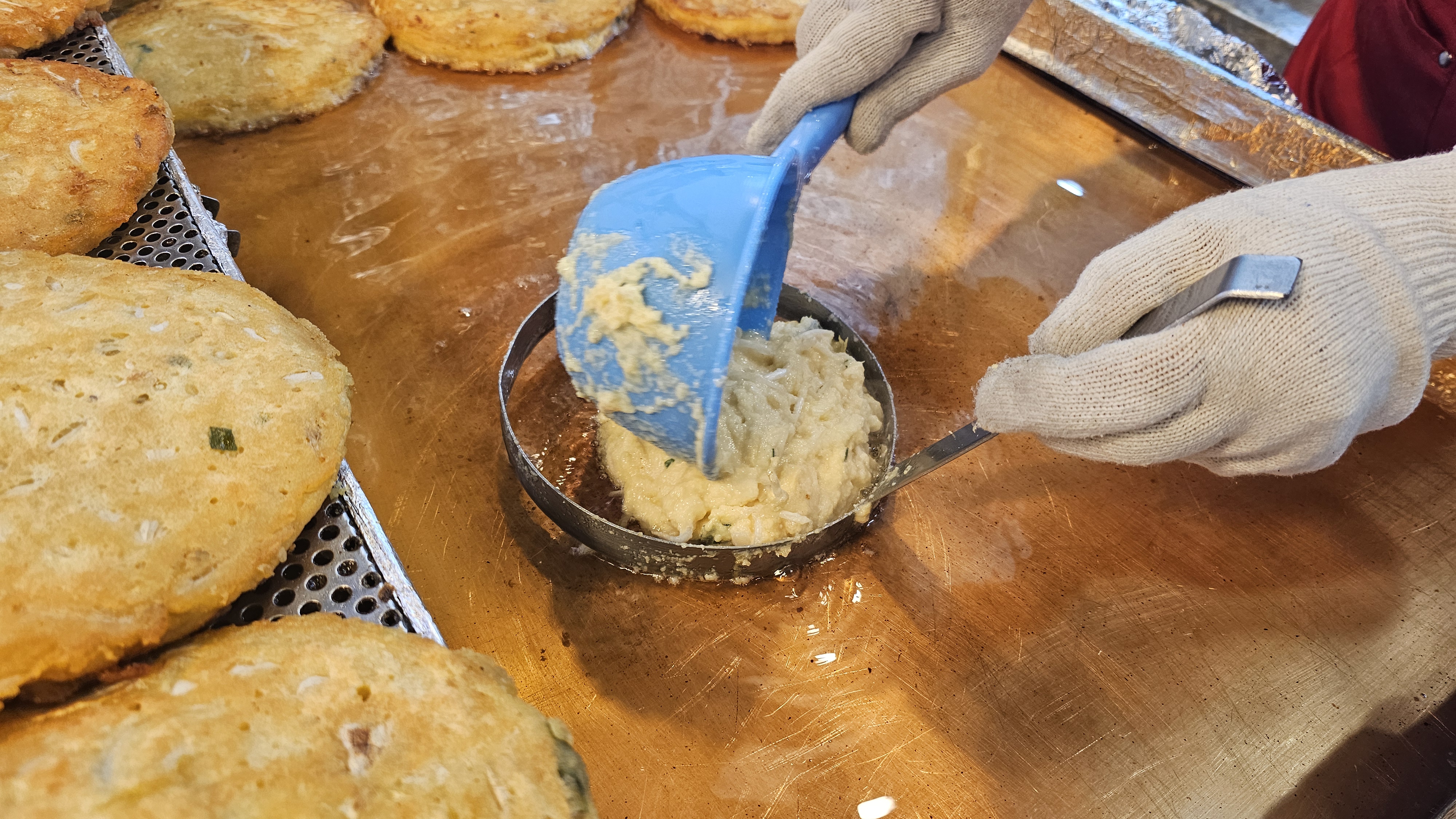 일정한 크기로 정갈하게 부쳐지는 모습이 신기했어요.