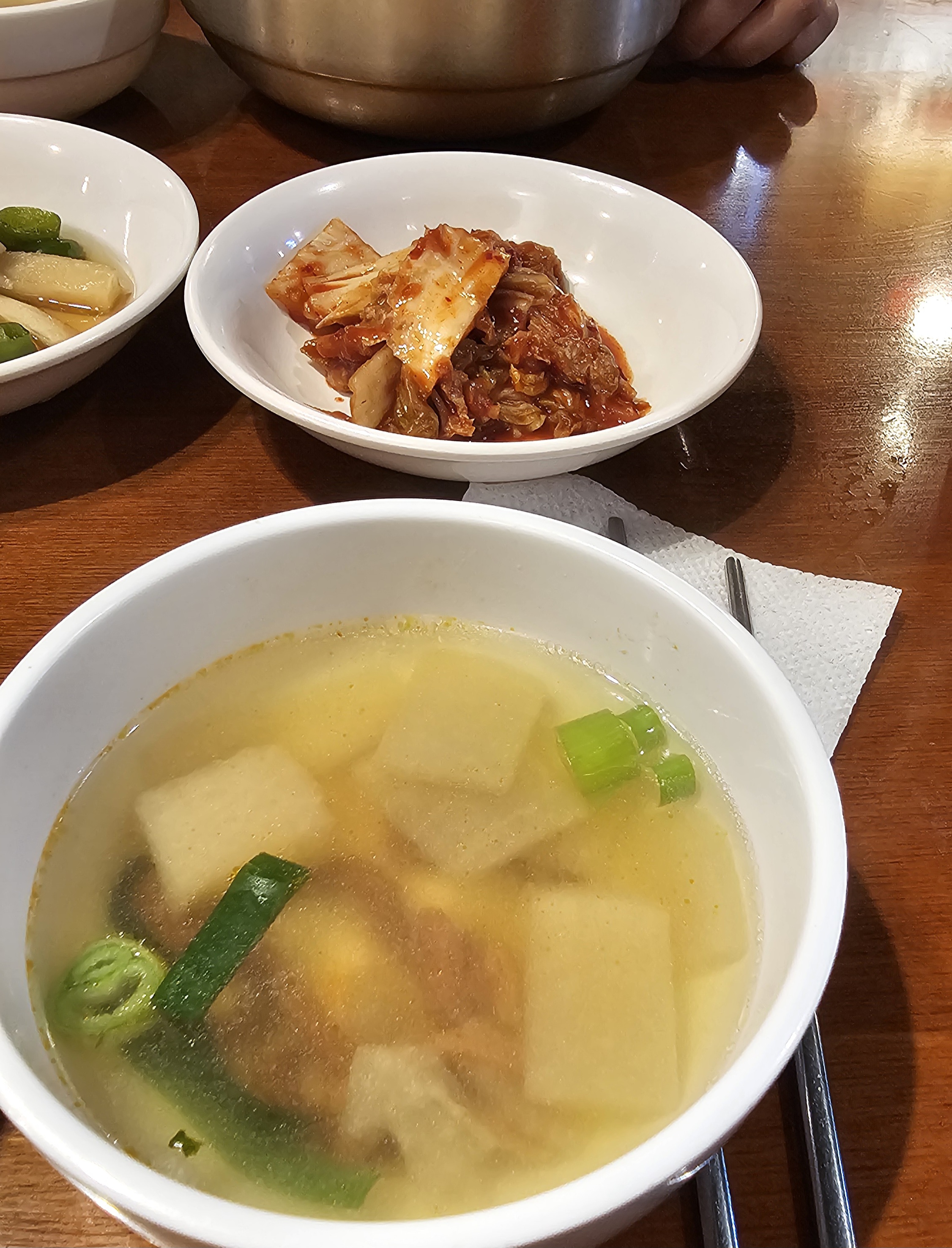 이 뭇국이 정말 인상적이었어요. 고기 육수의 깊은 맛이 속을 확 풀어주는 느낌!