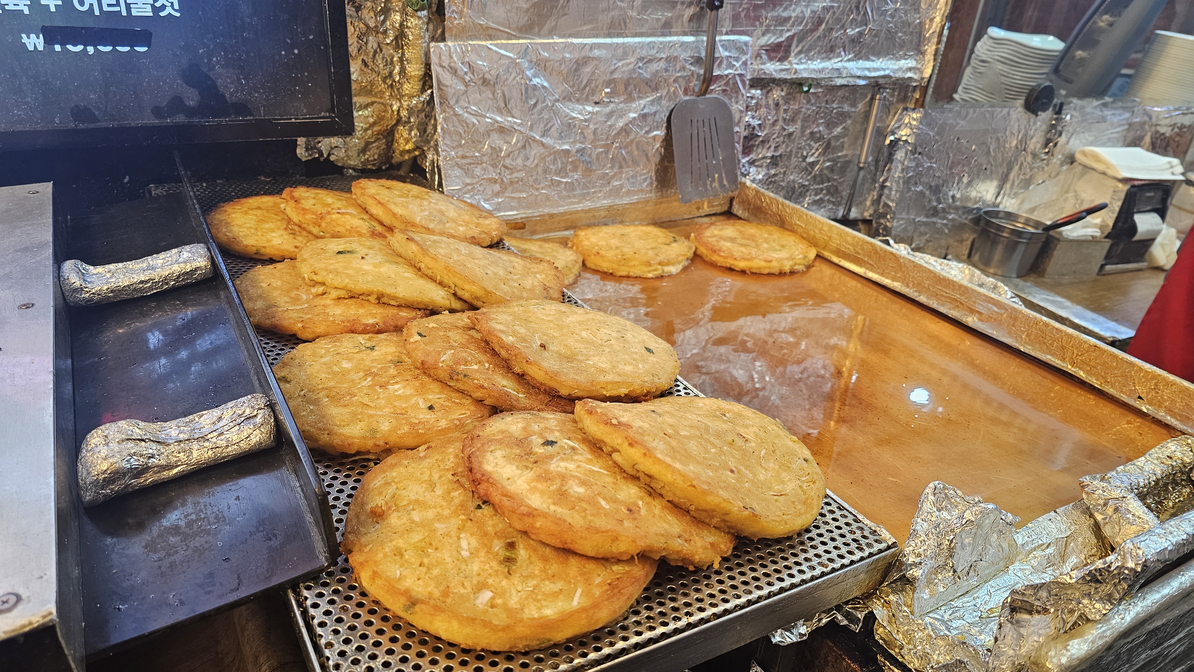 입구 쪽에선 녹두빈대떡을 틀에 맞춰 굽는 모습도 볼 수 있었는데,