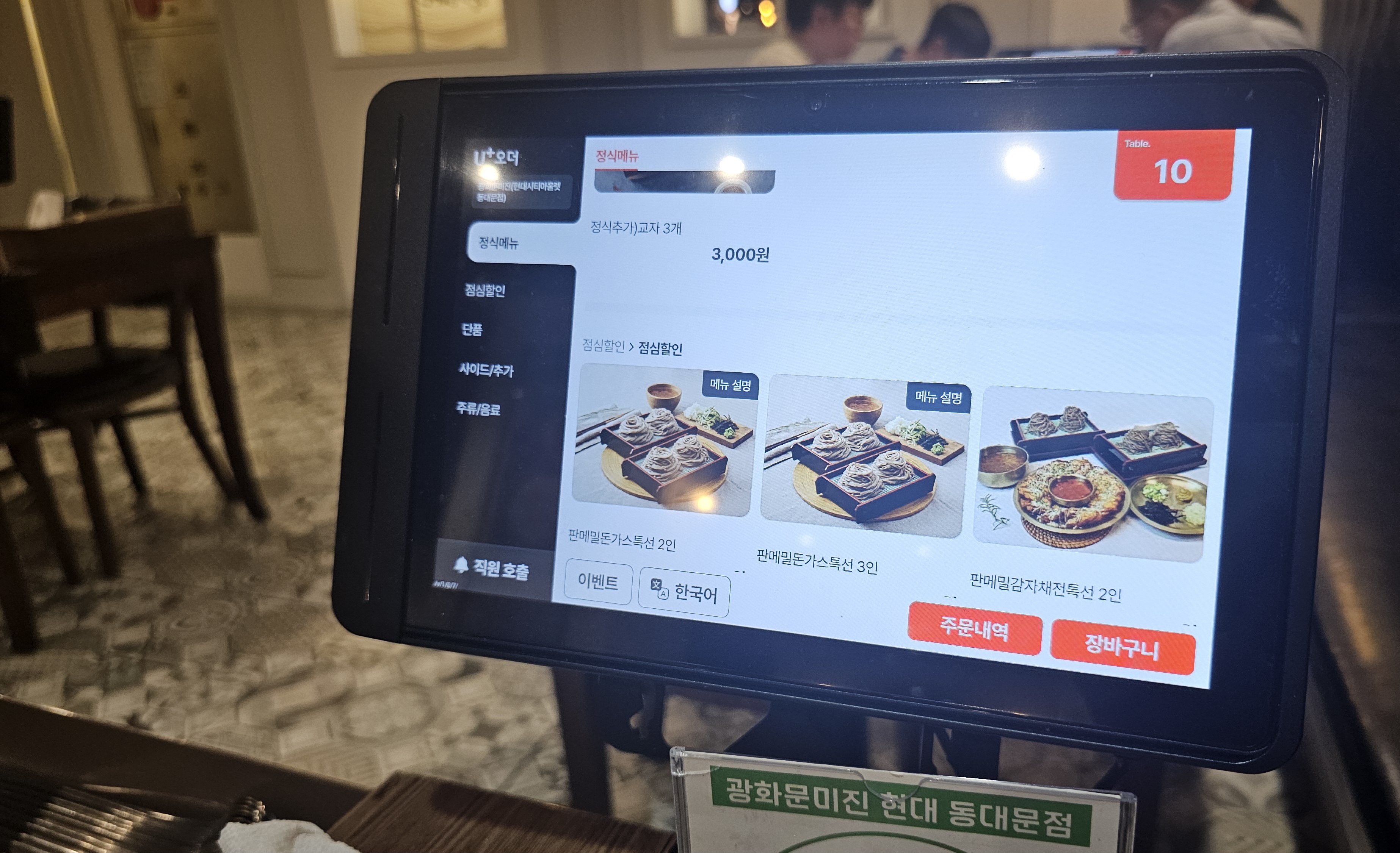 - 점심 특선: 오전 10:30 ~ 오후 3시까지 한정 메뉴 운영